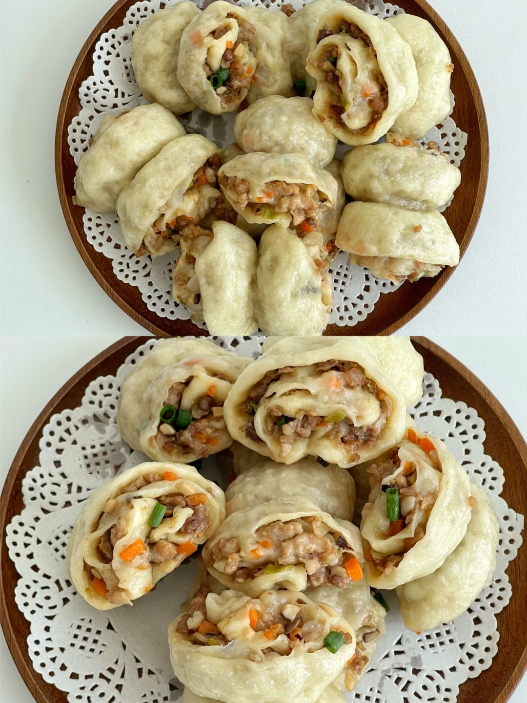 今天分享的米粒肉花卷,真的太好吃了,每次做完我家宝宝都能直接吃掉好几个。午餐安排肉花卷再搭配上一晚蔬菜汤,绝了![斜眼R]