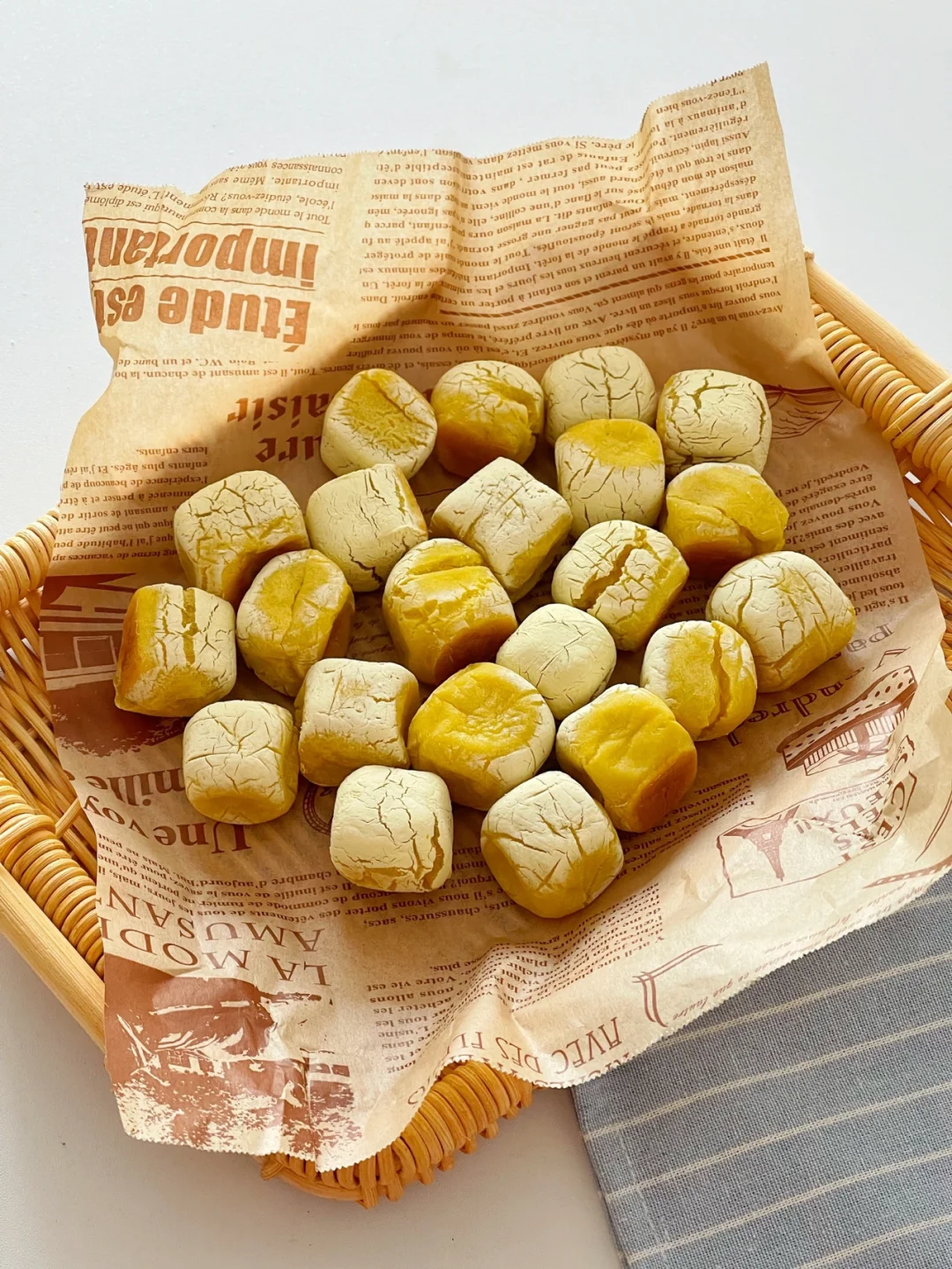 最近爆红的一款美食——脆皮南瓜饼,必须打卡安排一下,外层酥脆,里面是软软糯糯的,特别好吃。我家两小只也是一口接一口连吃好几个。 ✅准备材料:南瓜200克,糯米粉180克,砂糖20克(宝宝吃 不想加糖也可省略) ⬇️制作方法:⬇️ 🔹南瓜去皮上锅蒸熟碾成泥,筛入糯米粉和砂糖,揉成光滑的面团。 🔹揉成长条切成均等大小,整成正方形,放入提前预热好的烤箱,170度20分钟即可。(烘烤时间可根据自家烤箱脾性来对应调整)