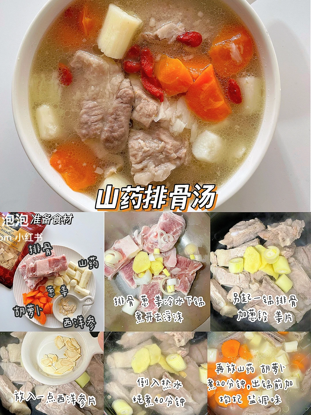 🔹食材:排骨、山药、胡萝卜、西洋参
