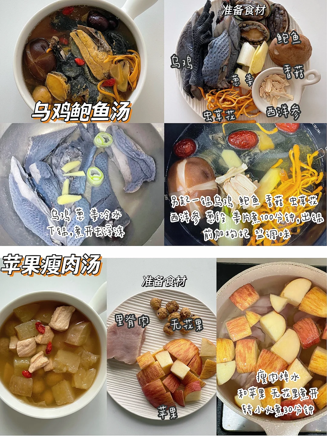 🔹制作方法:瘦肉切块焯水,另起一锅喝苹果块、无花果加适量清水煮30分钟即可。