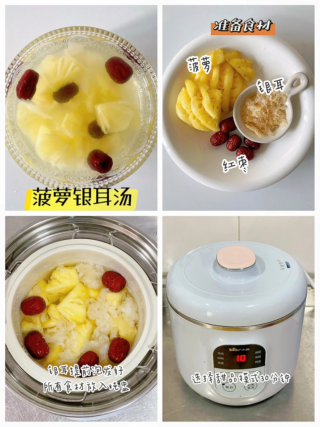 🔹食材:菠萝、银耳、红枣