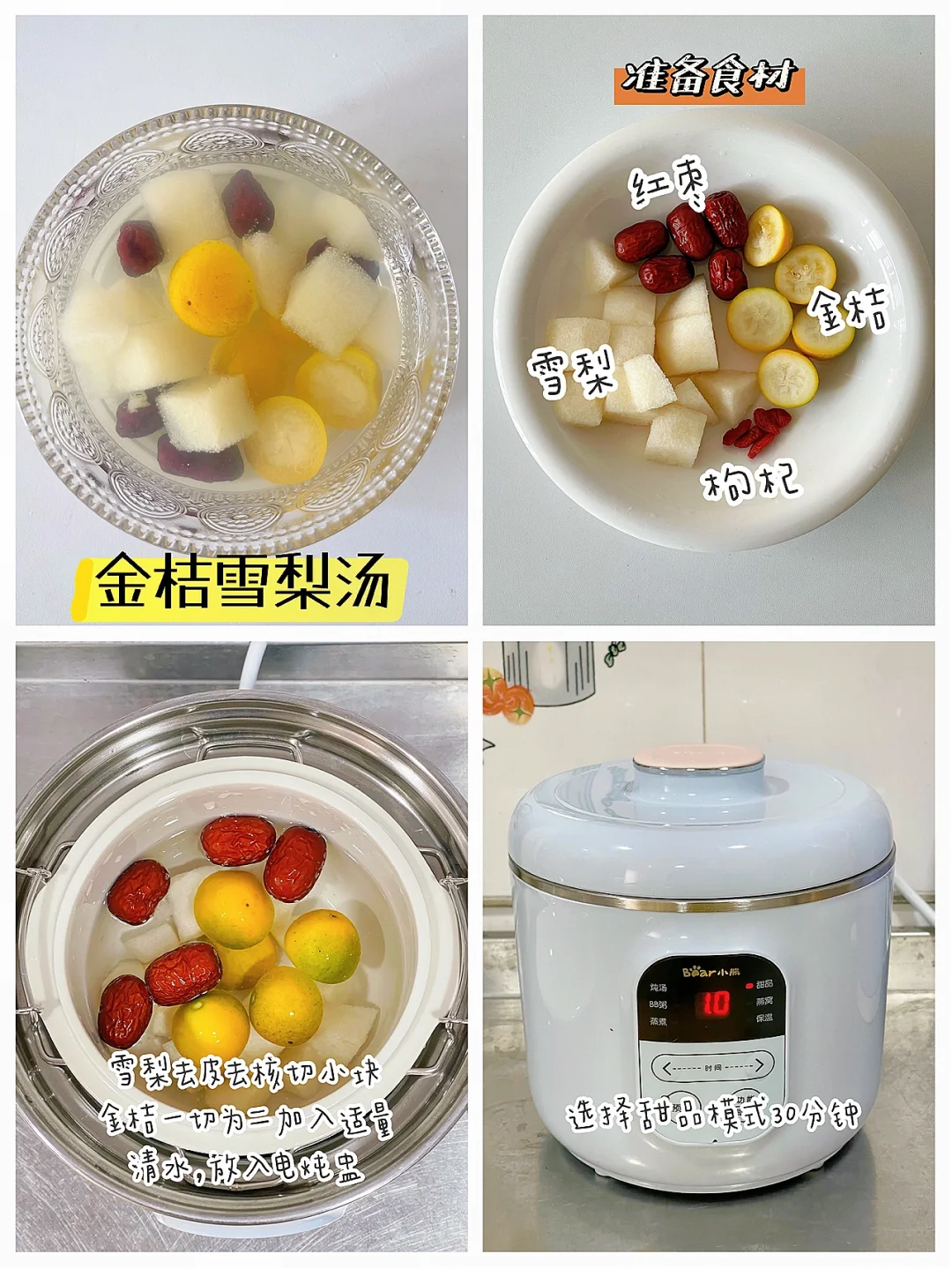 🔹食材:金桔、雪梨、红枣、枸杞