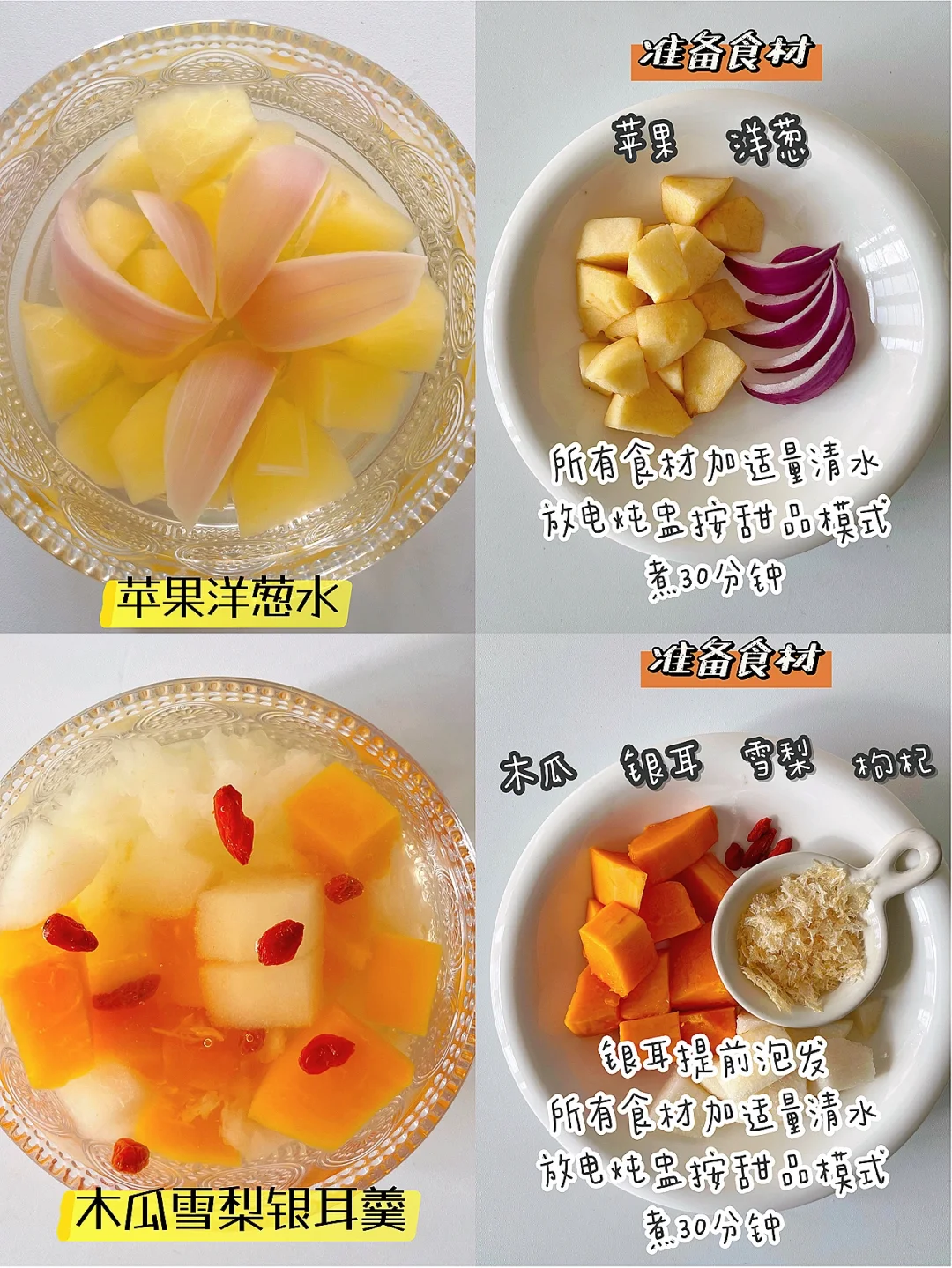 🔹食材:木瓜、银耳、雪梨、枸杞