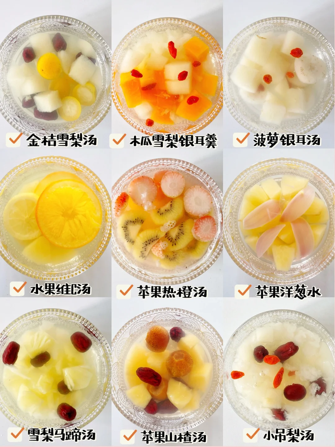 今天分享9款水果食疗汤,酸酸甜甜,可补充维c, 增加食欲,遇到宝宝食欲不振,不爱吃饭的时候不妨煮来喝,当然除了宝宝,大人也可以煮来喝哦,美美的下午水果茶就是它啦[斜眼R]