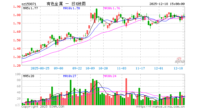 12月18日,有色金属ETF(159871)跌0.17%,成交额4157.65万元。当日份额减少500.00万份,最新份额为3.53亿份,近20个交易日份额减少2850.00万份。最新资产净值计算值为6.29亿元。
