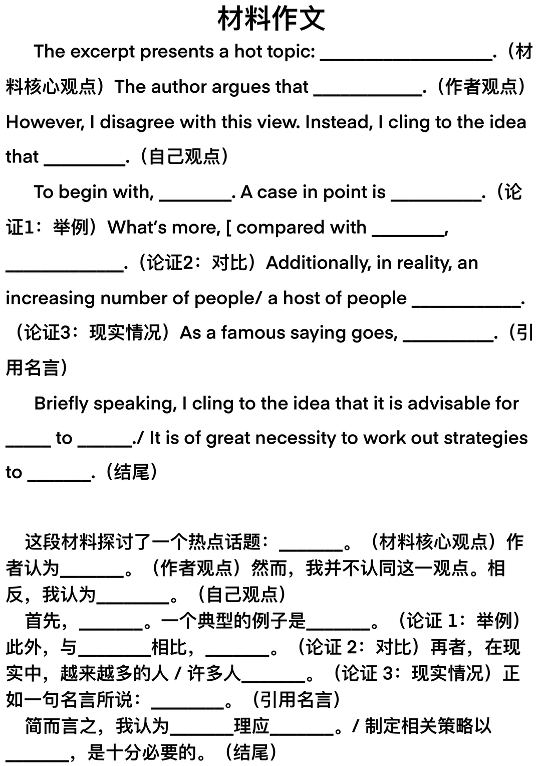 给本周六要考研的同学准备的大作文模板
