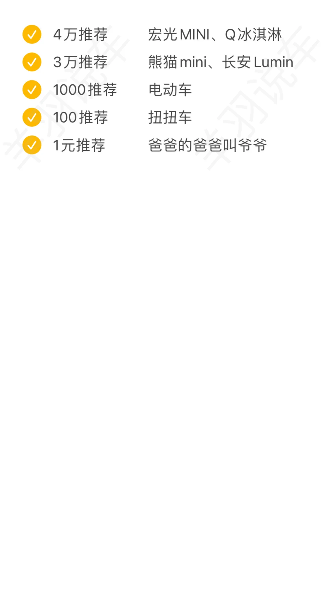 🚗很多姐妹买车很纠结,尤其是现在的新能源车,五花八门,眼花缭乱的,隔几天就有新车发布。那么在这种情况下,我们如何选车呢? ❤️其实买新能源车是件很简单的事情,不要把问题复杂化,口袋里有多少,就选什么车,就这么简单! 车子只是一个消费品,就是一个代步工具而已,没有太多其他价值属性!不要太过于纠结!