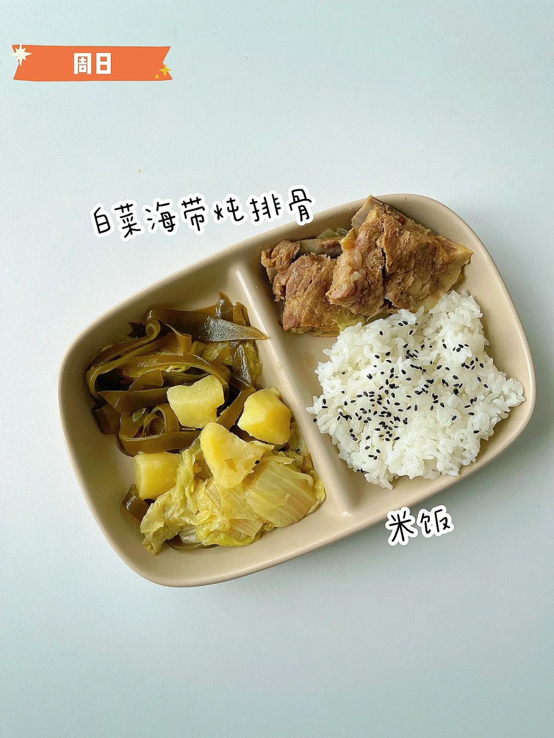 ✅周日:白菜海带炖排骨、米饭