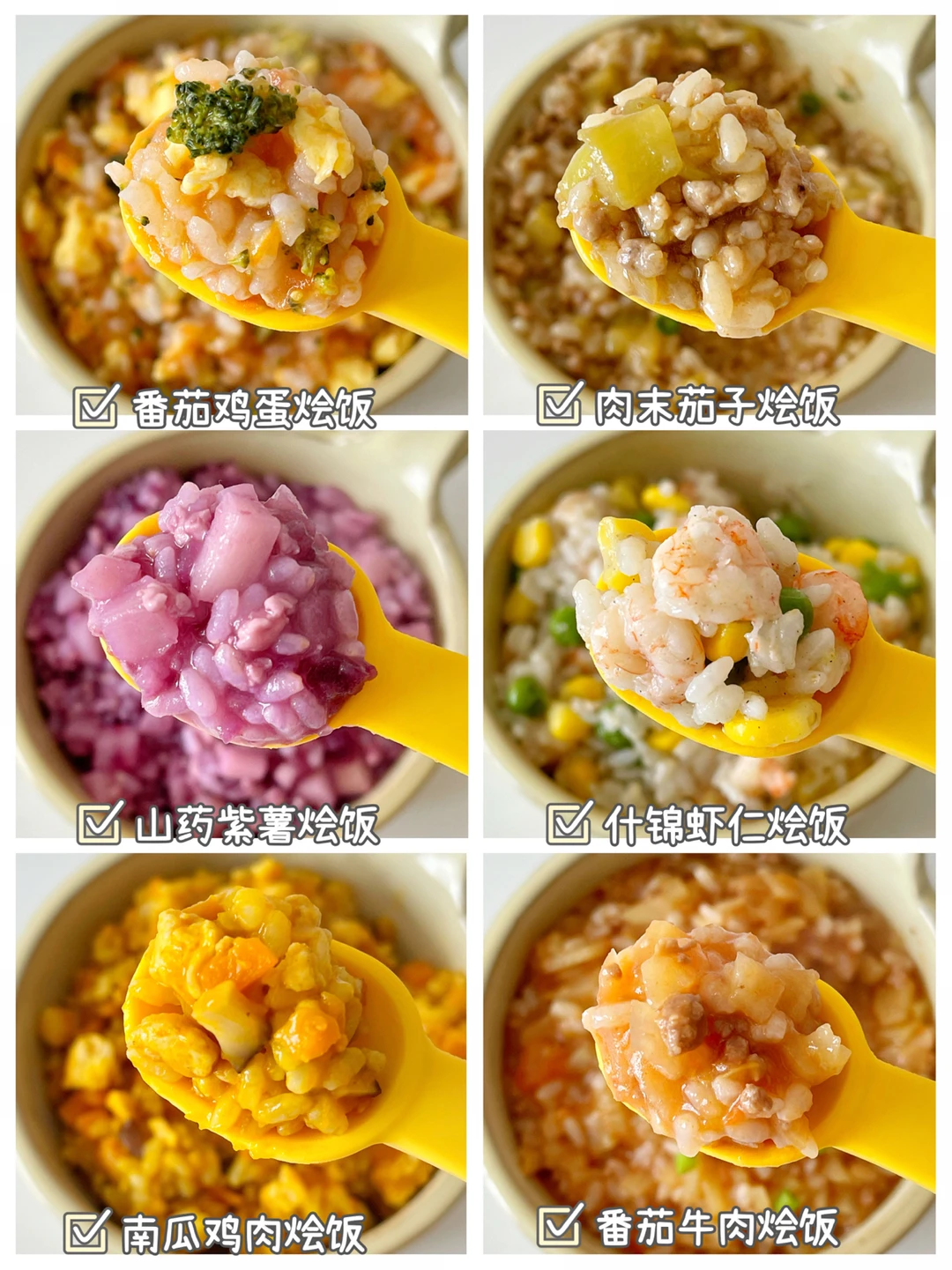 宝宝11+就可以适当的添加营养美味的烩饭啦,今天分享6款不同的食材搭配,款款美味哦[斜眼R]