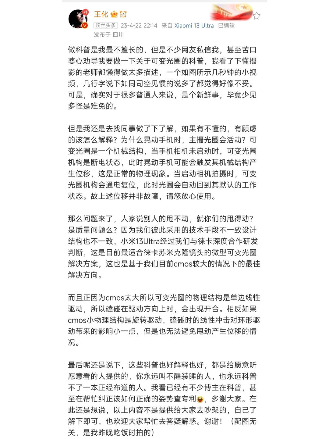 小米公关不得不出来科普可变光圈的原理