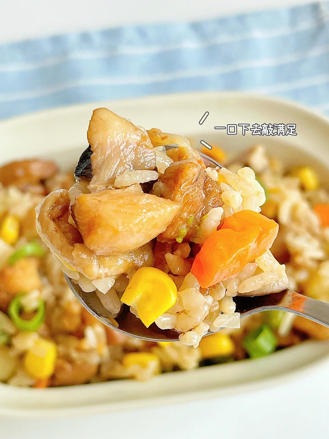 💕今天分享一款一招搞定饭渣宝宝的食谱,超级下饭的鸡腿时蔬焖饭,鸡肉和多种蔬菜的搭配,营养💯,每次做这个我家两小只都能干掉两大碗[偷笑R]
