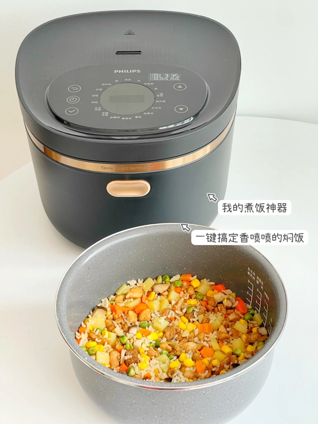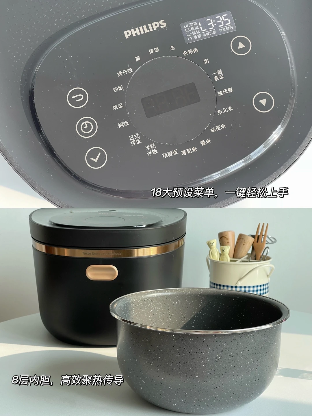 💕煮饭我用的是飞利浦 IH电饭煲,它是智芯IH大火力加热,八层内胆,可高效聚热传导,煮饭的口感可根据自己的喜好来设置(香糯、松软、劲道、快煮、锅巴饭5种口感,满足一家人不同的米饭喜好)还有18大预设菜单,一键就可以轻松搞定,小白也能轻松上手