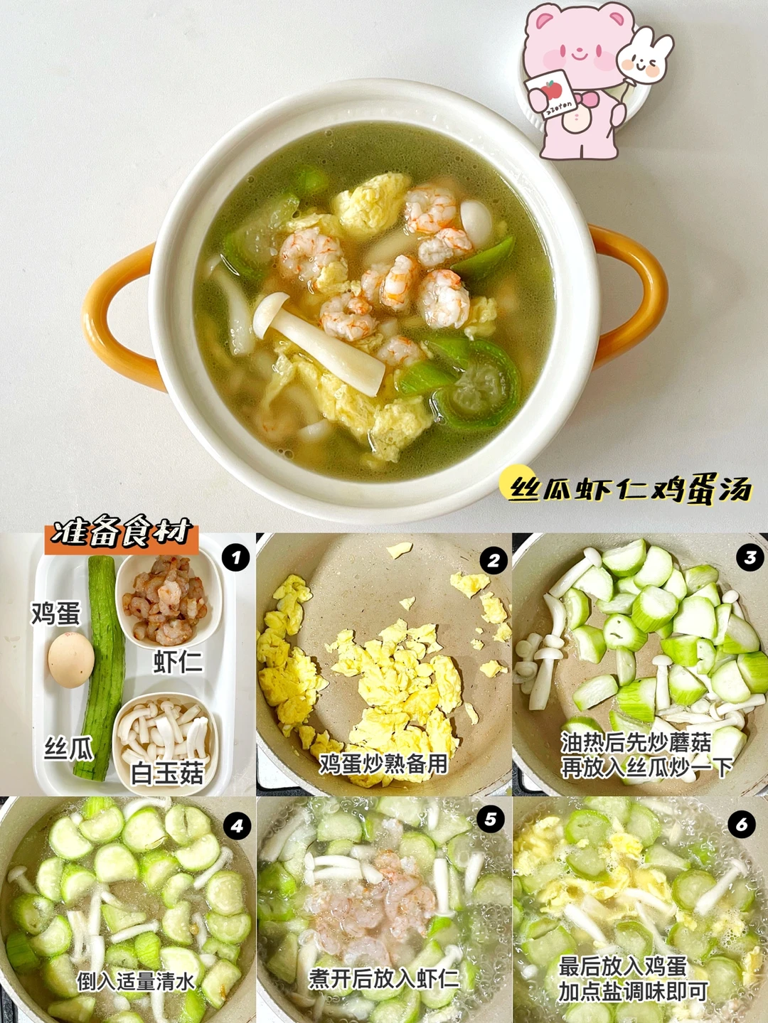 ✅角瓜虾仁鸡蛋汤