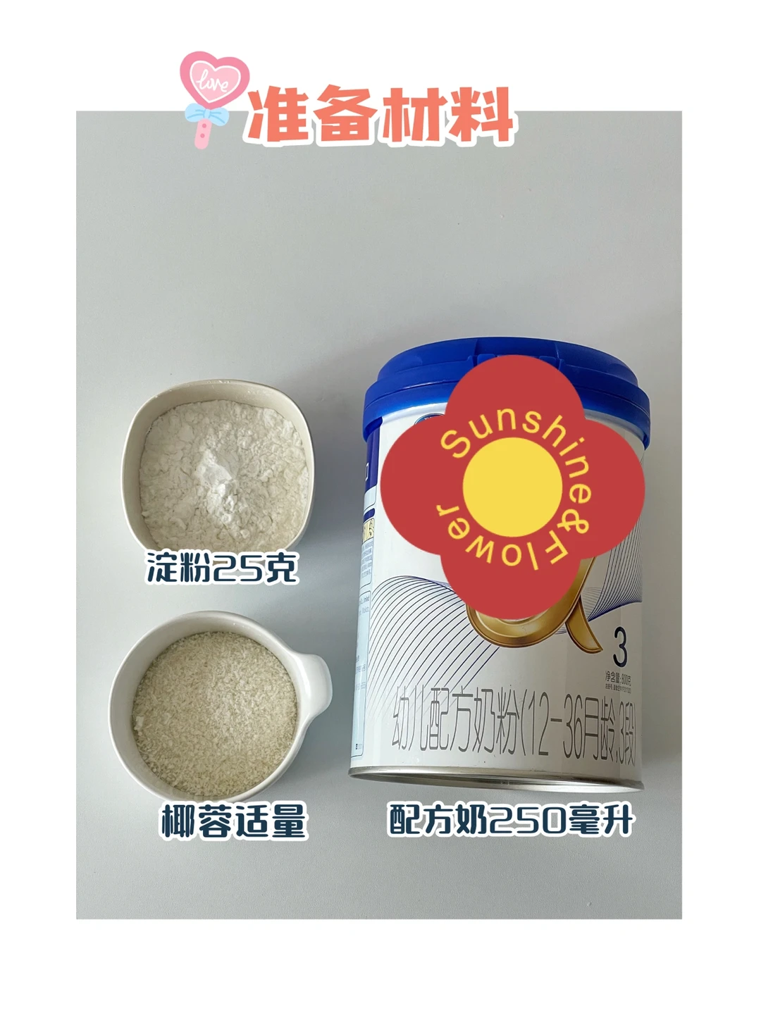 ✅准备材料:配方奶250毫升(也可以用牛奶)淀粉25毫升,椰蓉适量(还可以加糖10克,味道会更好一些)