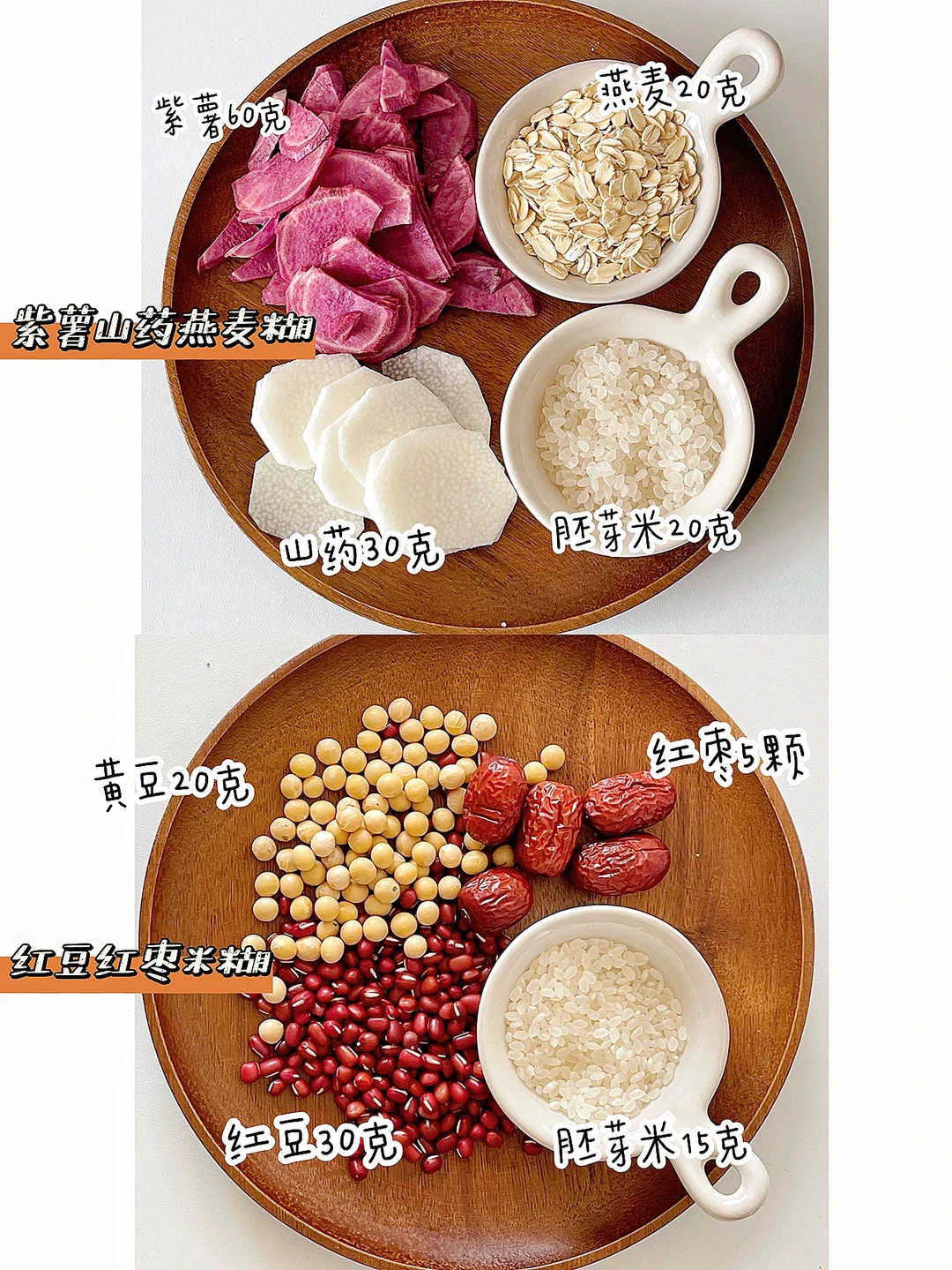 今天分享9款早餐营养米糊的搭配,每款都好喝又美味哦[斜眼R] ✅胡萝卜山药米糊:胡萝卜40克、山药30克、胚芽米15克、小米10克,清水400毫升 ✅红薯红豆花生糊:红薯60克、红豆15克、花生15克、胚芽米20克、清水300毫升 ✅奶香玉米糊:玉米60克、10克小米、10克胚芽米、牛奶450毫升 ✅红枣黑芝麻米糊 食材:黑豆10克、黑米10克、黑芝麻15克、胚芽米20克、红枣6颗,清水400毫升。 ✅银耳山药米糊 食材:银耳20克、山药20克、百合5克、胚芽米20克、牛奶100毫升、清水300毫升。 ✅南瓜核桃小米糊 食材:南瓜30克、小米30克、花生10克、核桃10克、清水400毫升。 ✅燕麦板栗玉米糊 食材:玉米60克、板栗30克、燕麦30克、牛奶100克、清水300毫升。 ✅紫薯山药燕麦糊 食材:紫薯60克、山药30克、燕麦20克、胚芽米20克、清水400毫升。 ✅红豆红枣米糊 食材:红豆30克、黄豆20克、红枣5颗、胚芽米15克、清水400毫升。 今天先分享到这啦,下期见哦💕