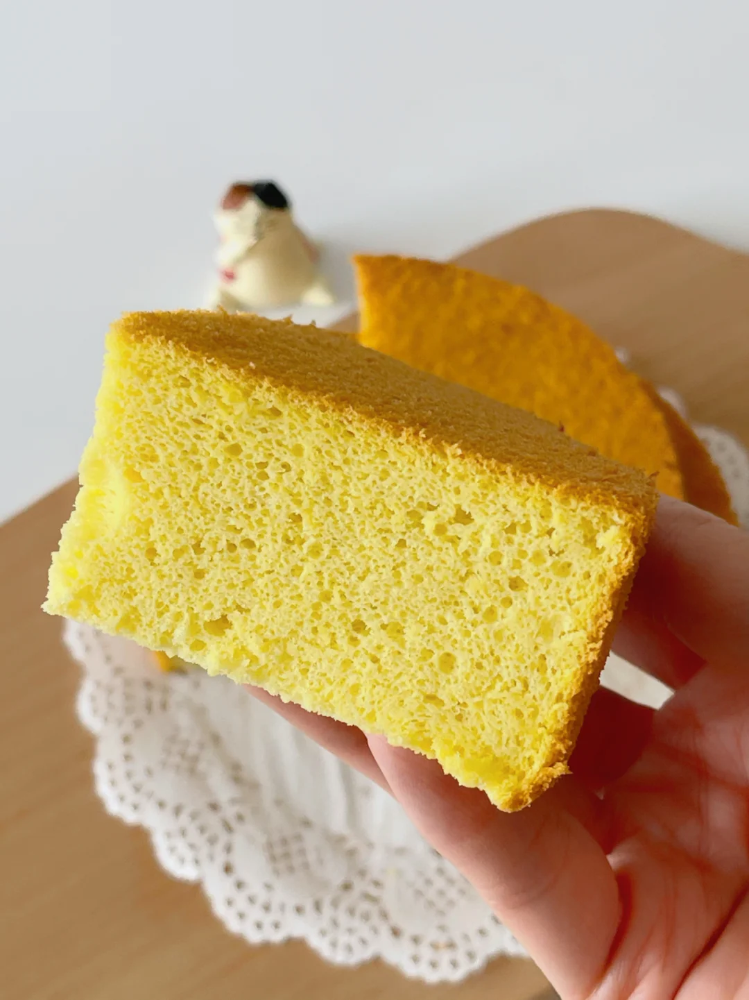 今天做了一款南瓜版的戚风蛋糕,太成功了。给两小只当下午茶一人一块,好吃停不下来[偷笑R]