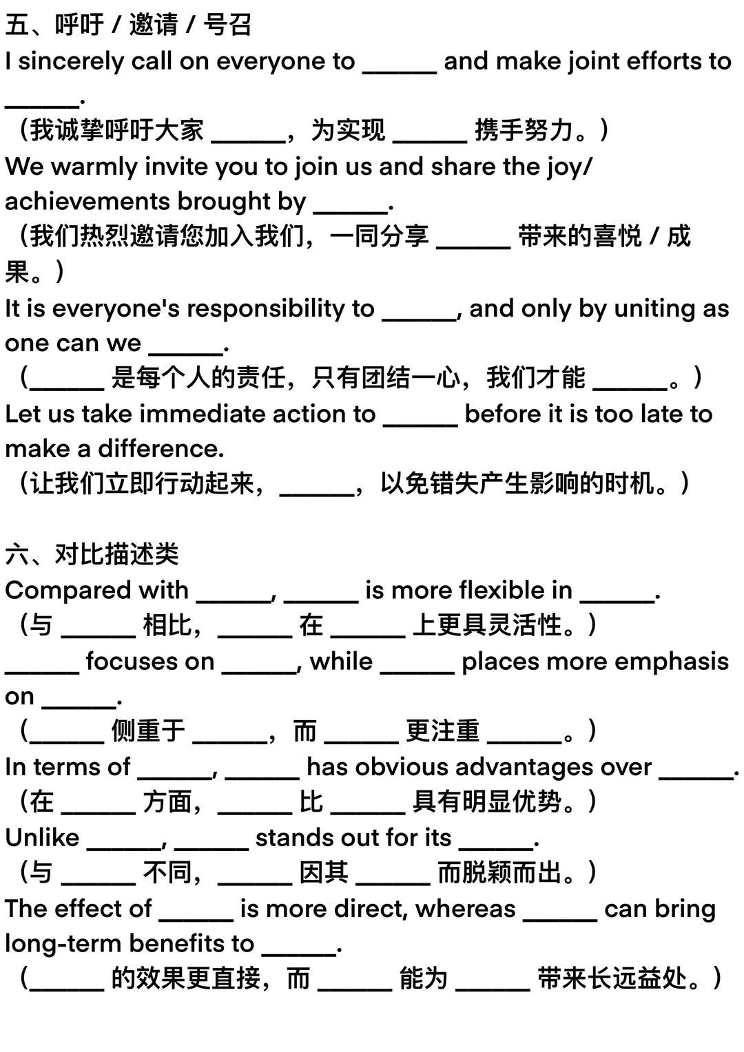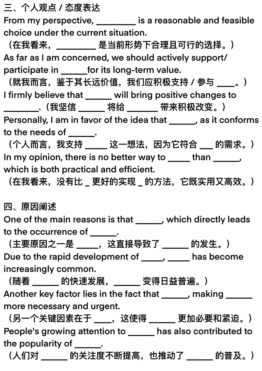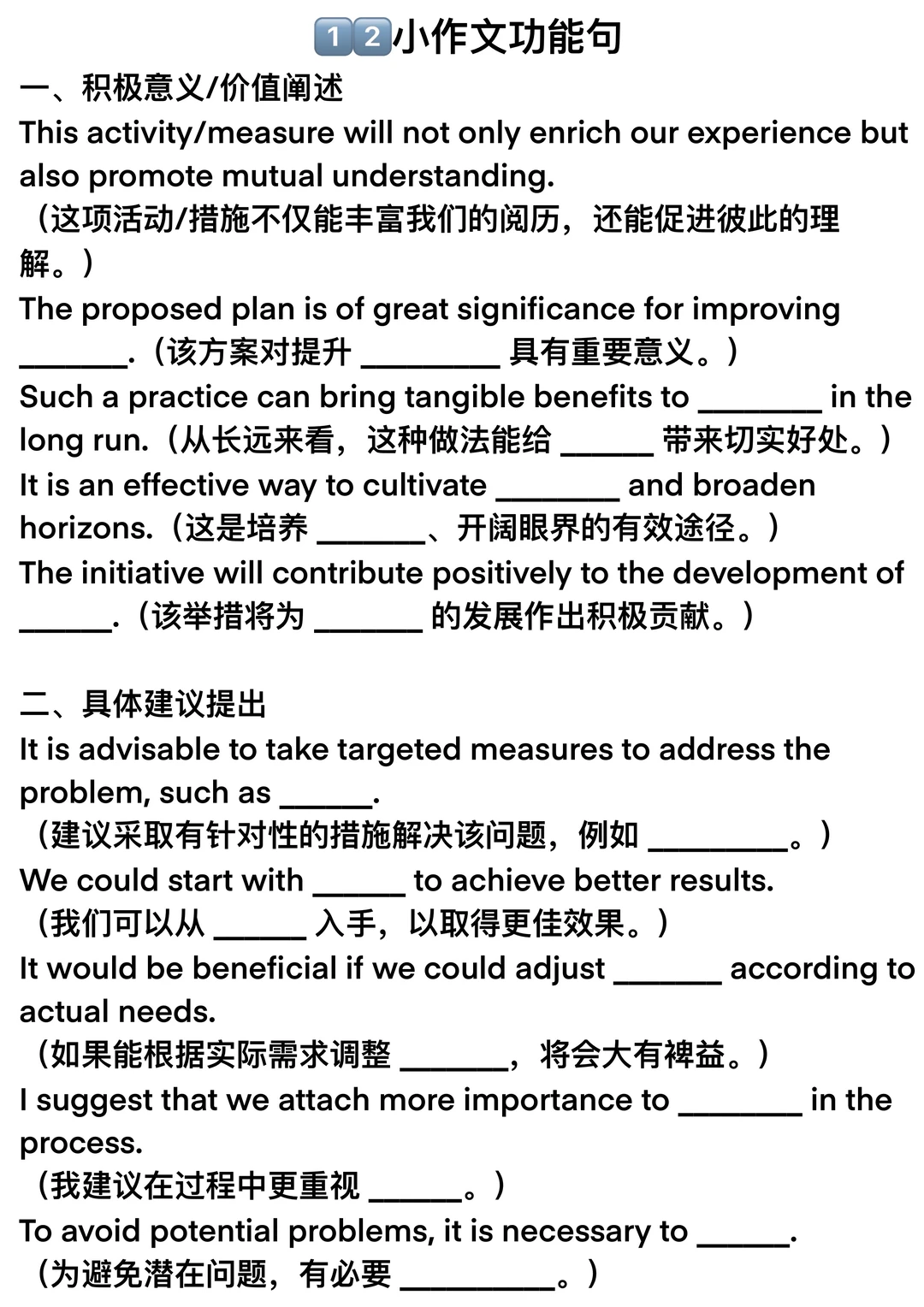 (3)另外为大家准备了一些功能句(积极意义、提建议、个人观点、原因阐述、呼吁、对比描述)