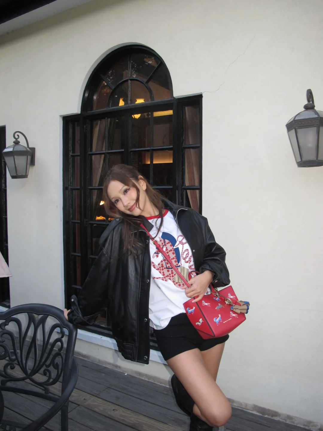 我这次搭了一个比较休闲又带点酷感的look,MK黑色皮衣配上新年小马印花T恤,亮眼的JORDI小懒包搭配新年限定的小马挂件,日常通勤、出街、约会都很好搭,随手拍都干干净净的 美式轻奢风。