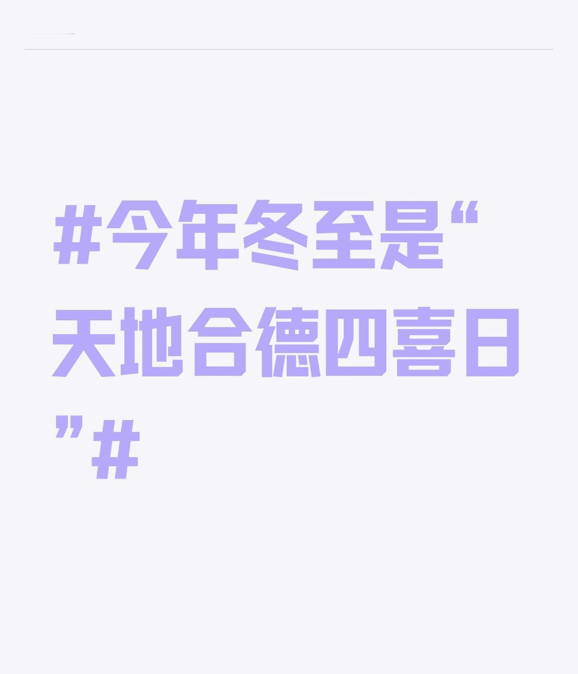 今年冬至是“天地合德四喜日” 今年12月21日冬至可是“天地合德四喜日”,简直百年不遇!上一次出现是1844年,下一次要等到2186年。所谓“四喜”,一是节交冬至,阳气生发;二是月逢天赦,能消灾解厄;三是日值岁合,主一年和顺;四是时遇金舆,出行团圆顺遂。 这么难得的日子,可别错过。可以阖家团圆吃顿冬至饭,北方吃饺子,南方吃汤圆,有的地方吃羊肉汤。要是有祭祖习俗,也能准备祭品缅怀先辈。还得顺应阳生做好养生,早上多晒后背补阳气,中午吃点红枣、桂圆、羊肉等温补食物。