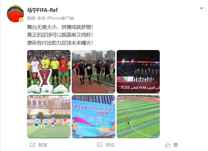 直播吧12月20日讯马宁更新了个人社媒,晒出了执法阿拉伯杯、中小学生比赛等各类比赛的照片。