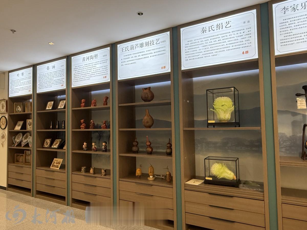 三层“匠心传承”非遗展厅是整个文博馆文旅融合与互动体验的核心。展厅集中展示内黄县44项237件非遗项目,以及周边五县四区13项95件非遗项目,划分乡土印记、乡音乡艺、匠心工坊、仁心济世四大板块,实现“见人见物见生活”的活态传承。