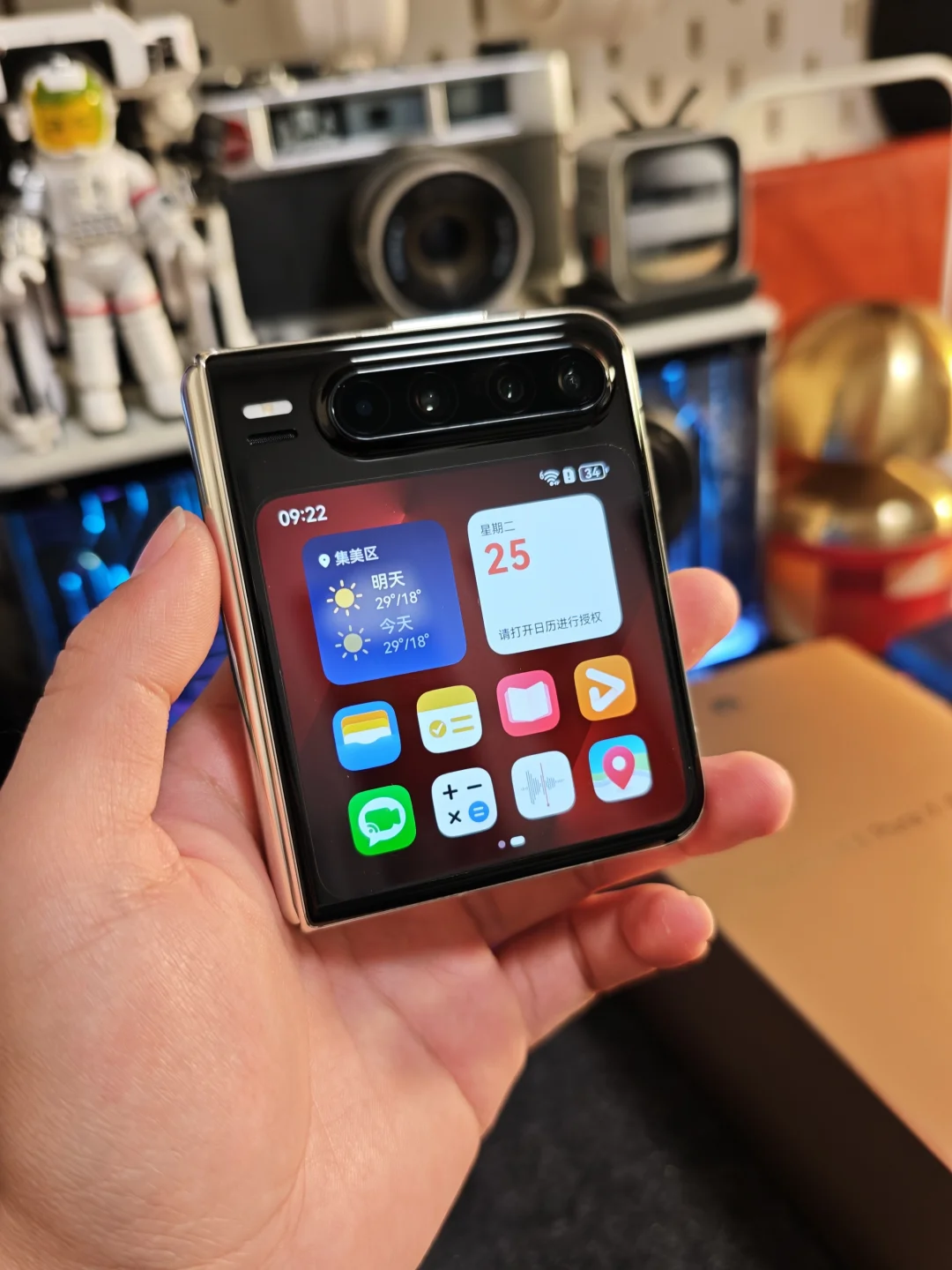 华为Pura X刚上手,说说不一样的地方,首先是展开真的很小,很可爱,有不少人说黑莓机,确实像! 其次就是质感很好,比普通小折叠更有感觉。然后就是华为可以登陆各类app,直接登陆不需要密码验证码,爽了。最后是看视频的视野确实是大,Pura X虽小但看视频爽,神奇不神奇?