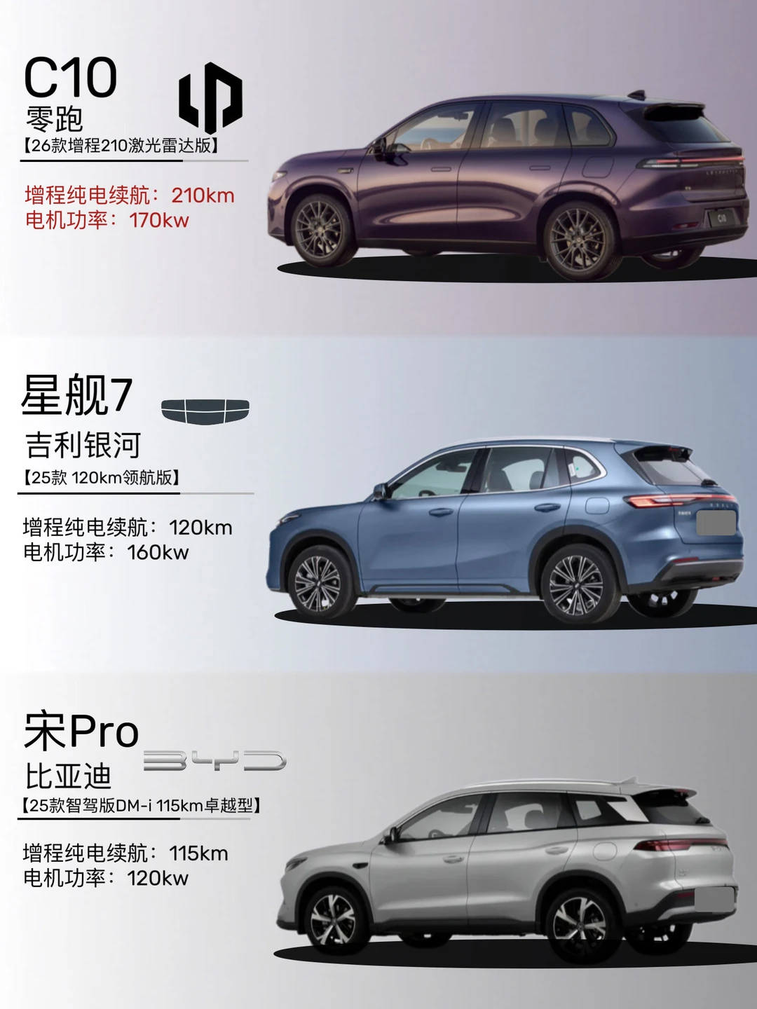 🚗咱家庭买车,看重的就是实用舒适、智能、续航。目前市面上热门的几款车,零跑C10增程版、吉利银河星舰7和比亚迪宋Pro。一起来聊聊