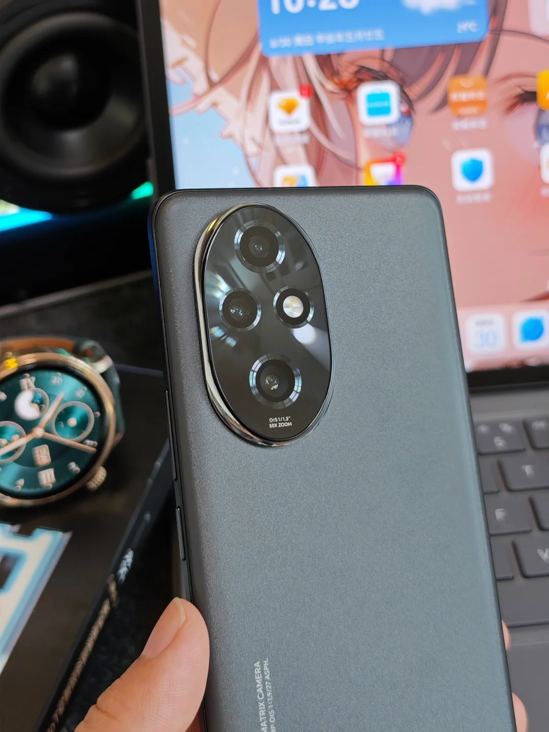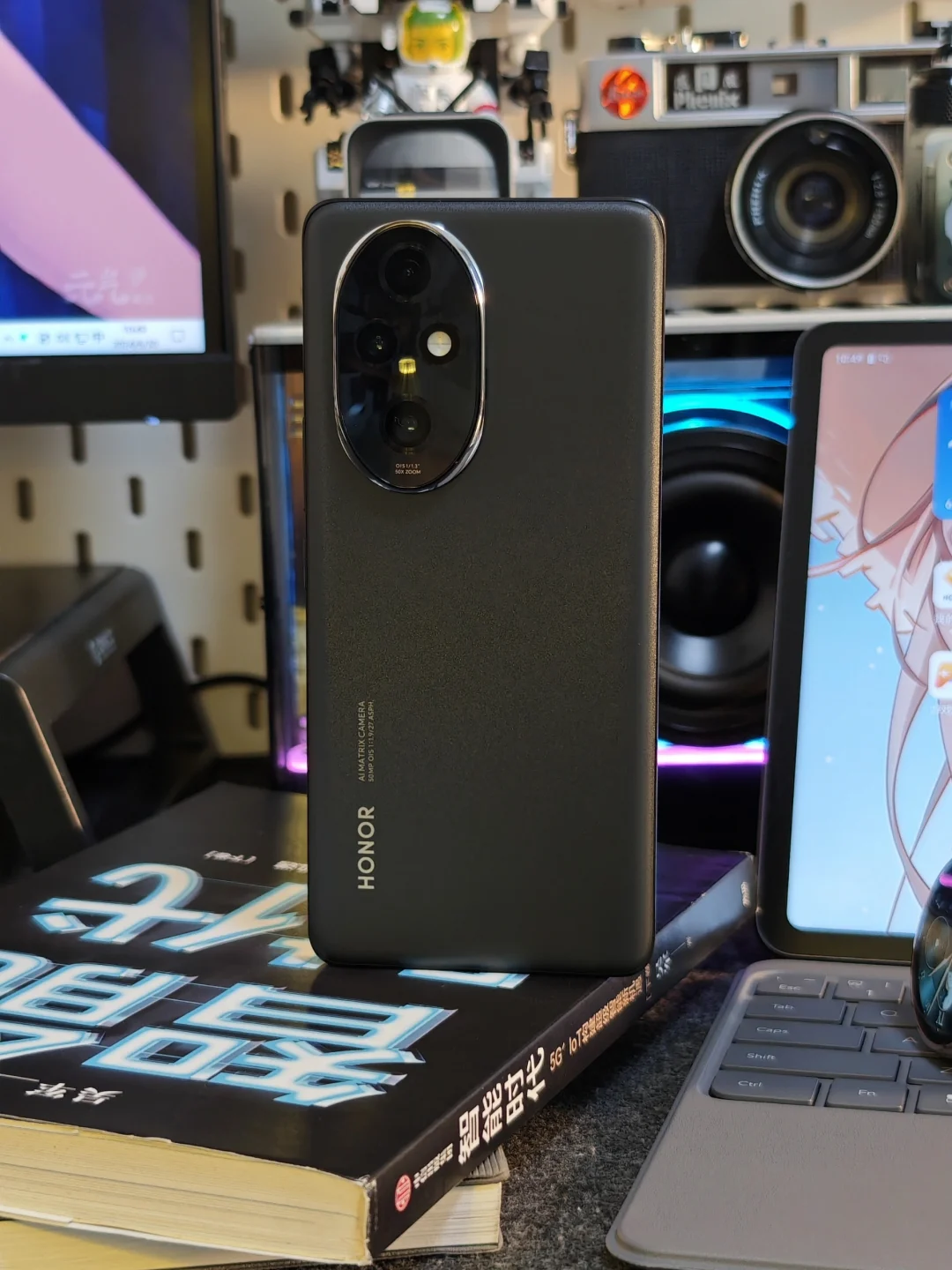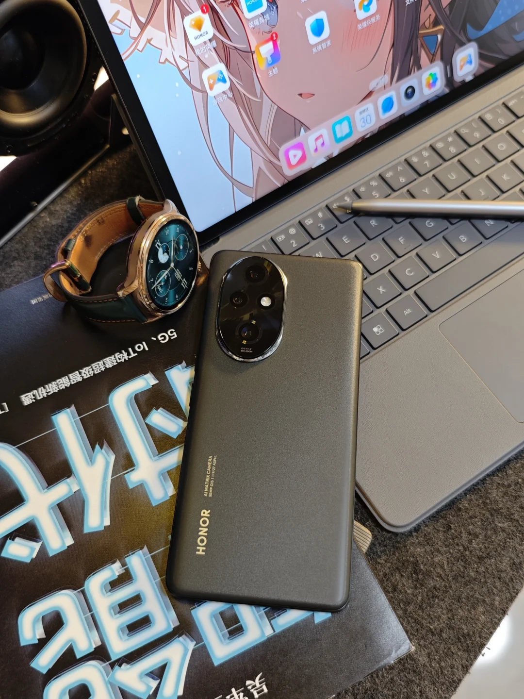 今天的荣耀200Pro是黑色系,绒黑色玻璃后盖手感细腻,丝滑程度把握得刚刚好,属于不会轻易滑落的那种。然后黑色与镜头模组显得更搭,再来一套暗黑主题,低调且更耐看。 荣耀200Pro屏幕方面我的直观感受是观感比较舒服,可能是因为有荣耀护眼技术方面的加持。另外屏幕亮度也比较高,户外看得更清晰。 当然,荣耀200Pro更令人着迷的当属雅顾人像,以光影做雕塑,挺有大师味道,而黑白调的照片的魅力,这块后面再来单独分享。