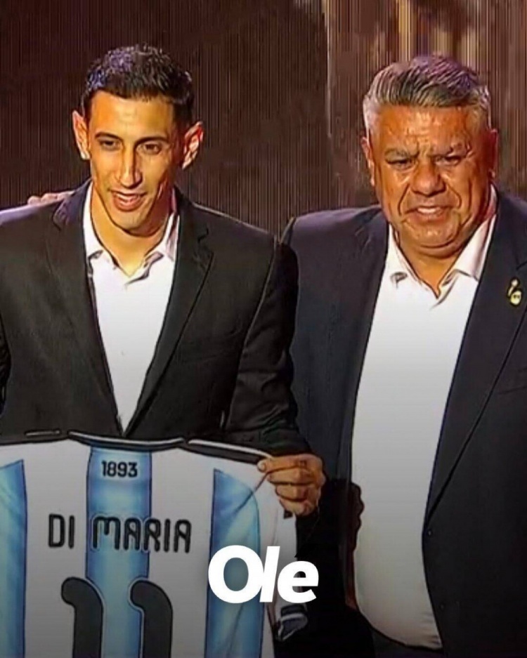 塔皮亚和迪马利亚一起上台领奖,还展示了印有迪马利亚名字的阿根廷国家队11号球衣。主持人提问,这是否暗示迪马利亚可能重返国家队参加2026年世界杯,塔皮亚主席笑着说:“让他自己好好考虑一下。”