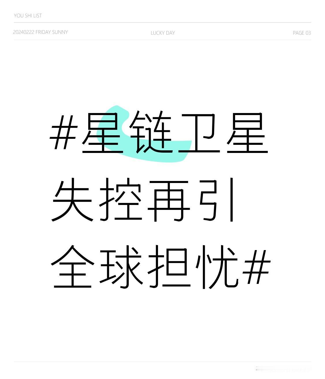 星链卫星失控再引全球担忧 “星链”卫星失控这事真让人揪心。12月17日,SpaceX的一颗“星链”卫星在418公里轨道高度出问题了,形成碎片带。从情况看,它推进器燃料箱泄漏,还释放多个物体,随后不受控坠落,美国近地轨道实验室发现了“数十个”残骸碎片。 初步调查可能是卫星内部问题,而非与太空物体相撞。虽说SpaceX称卫星大体结构完好,几周内会在大气层烧毁,也不会威胁国际空间站,但太空碎片风险还是让人担忧。自“星链”项目启动,已发射很多卫星,以后这种事故要是增多,近地轨道可就更危险了,真希望能赶紧查明原因,保障太空安全。