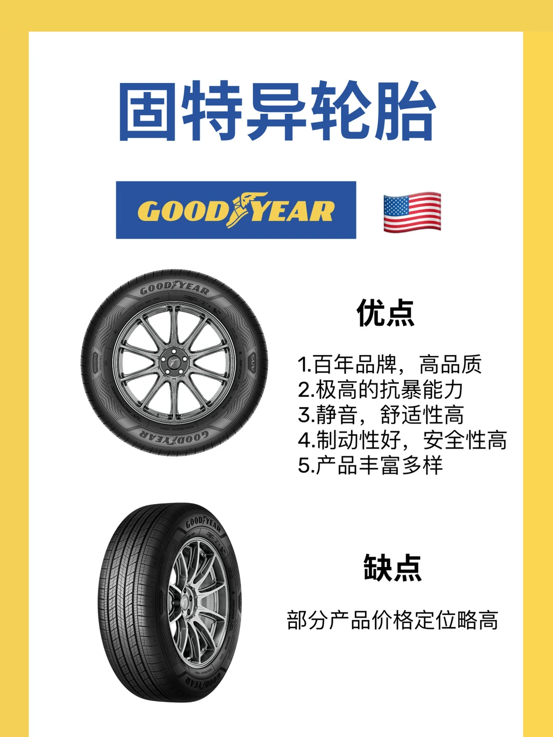 ▪️其四,固特异是百年知名轮胎品牌,用起来放心。