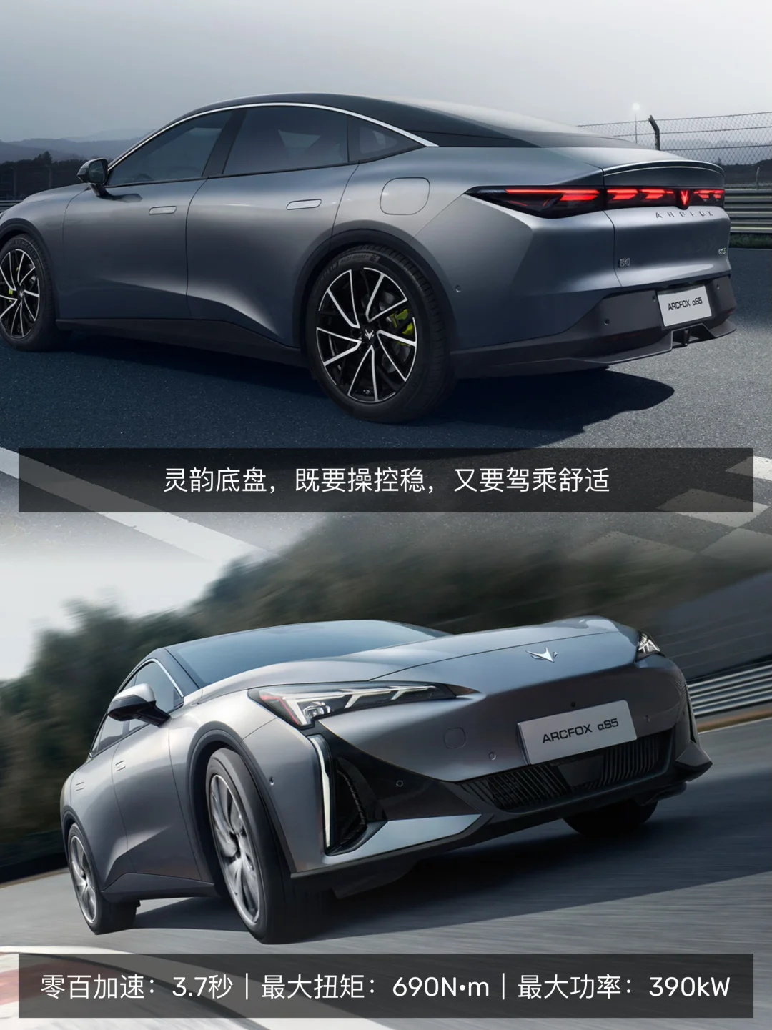 4、动力方面:扭矩越大越好,零百加速越低越好。🚂阿尔法 S5搭载极狐汽车第四代极峰动力系统,四驱版本采用豪华纯电车型常搭载的同步+异步的双电机组合,总功率390kW,最大扭矩690N・m,百公里加速仅3.7秒