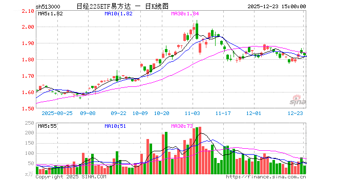 12月23日,日经225ETF易方达(513000)跌0.71%,成交额7202.73万元。当日份额增加100.00万份,最新份额为9.21亿份,近20个交易日份额增加2000.00万份。最新资产净值计算值为16.23亿元。