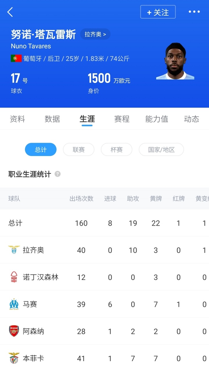 24-25赛季,塔瓦雷斯出战30场比赛,贡献9次助攻,夏窗拉齐奥激活500万欧的买断条款签下球员。拉齐奥主席洛蒂托还曾表示即使收到7000万欧的报价也不会卖掉球员。