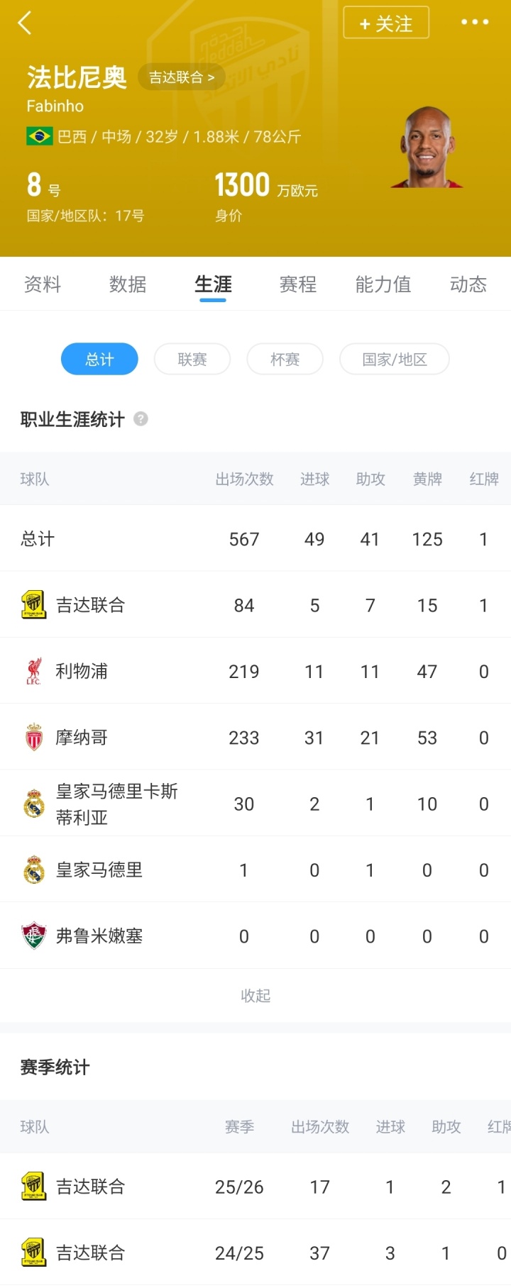 直播吧12月24日讯据ESPN巴西版的报道,吉达联合想与32岁的法比尼奥提前解约,但球员不愿放弃剩余6个月1200万欧的薪水。