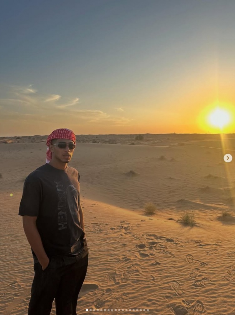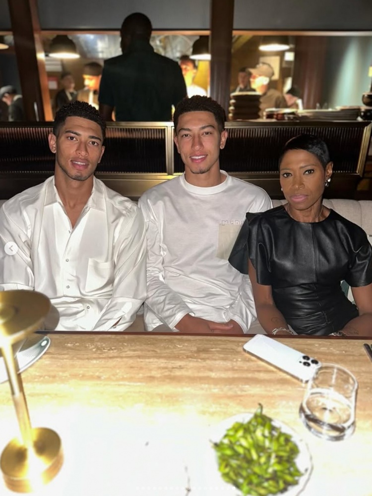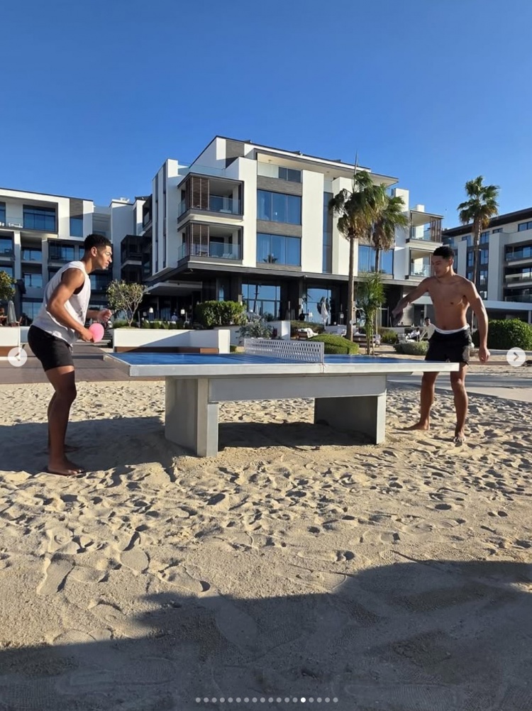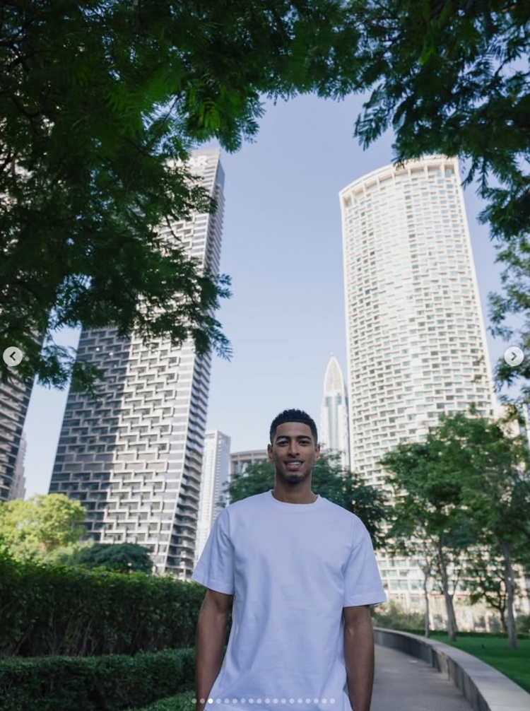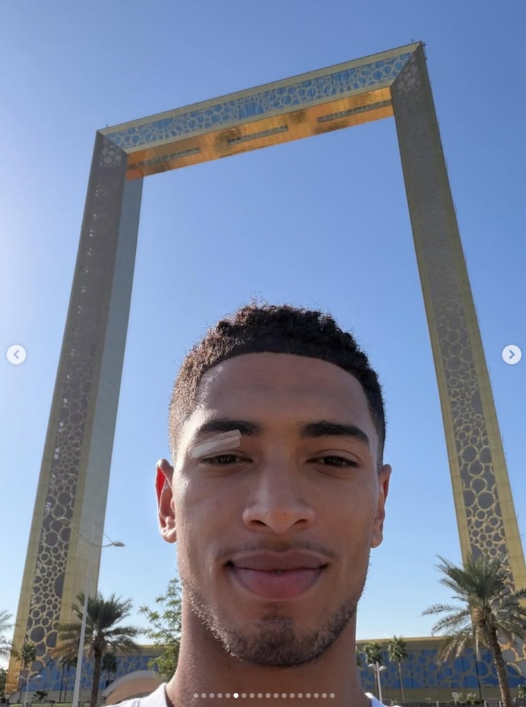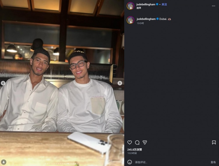 直播吧12月24日讯皇马中场贝林厄姆更新社媒,他与弟弟乔布·贝林厄姆正在迪拜度假。