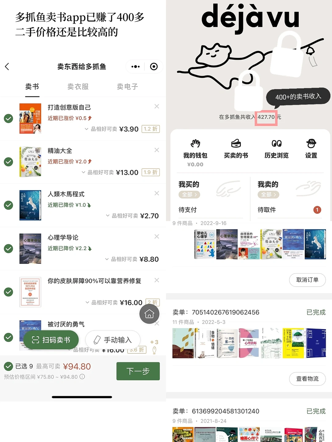 这是我用得蕞多的平台。累计收入400➕,回收价格还算高,一般国内书籍都回收,扫码自动加入🛒,有些书不能回收,我一般是能回收多少就多少。太旧的或者盗版的书系统会通知你拿回,首次快递免费后面就要自己付了。挣到的钱可以转到绿色软件的零钱包里。
