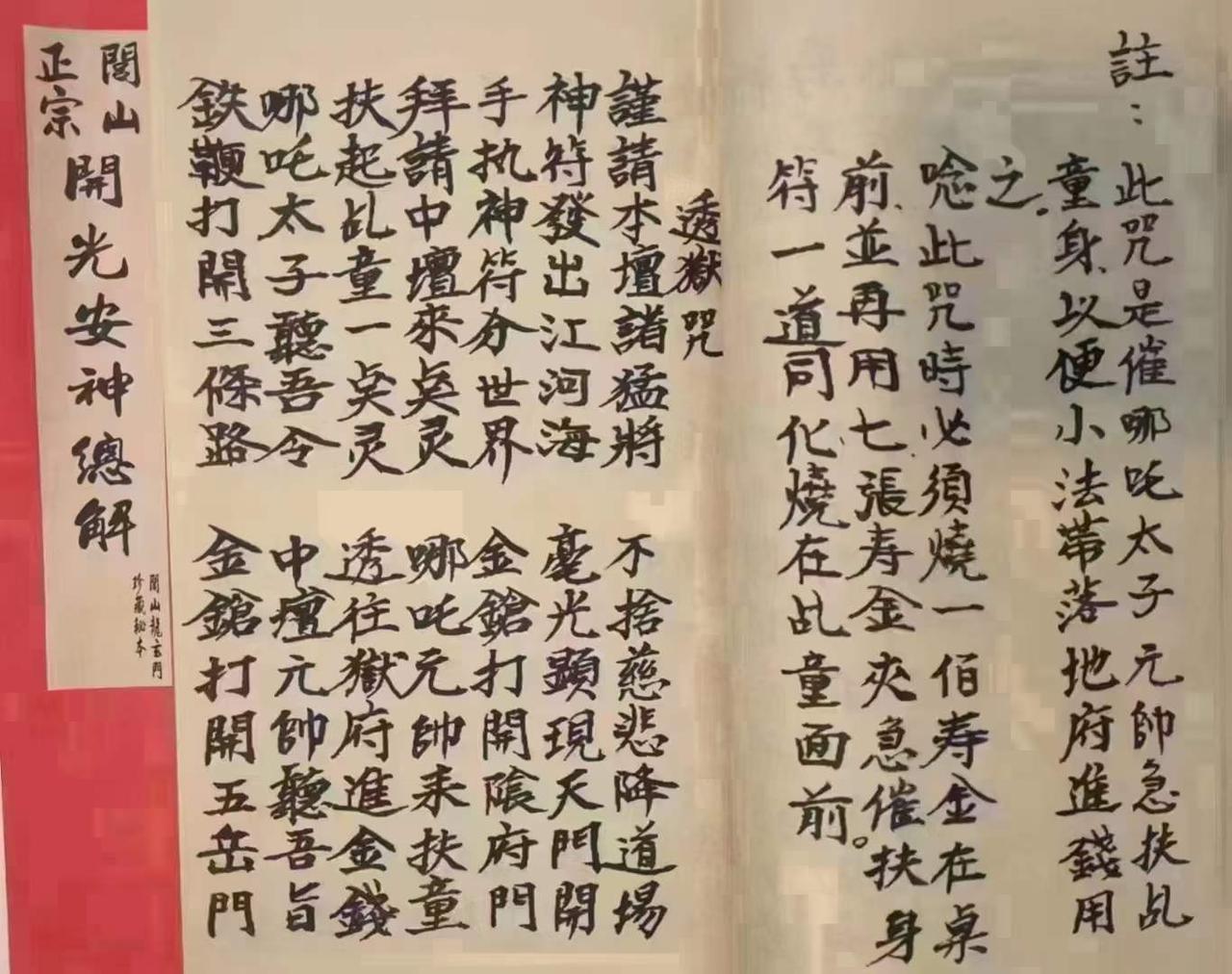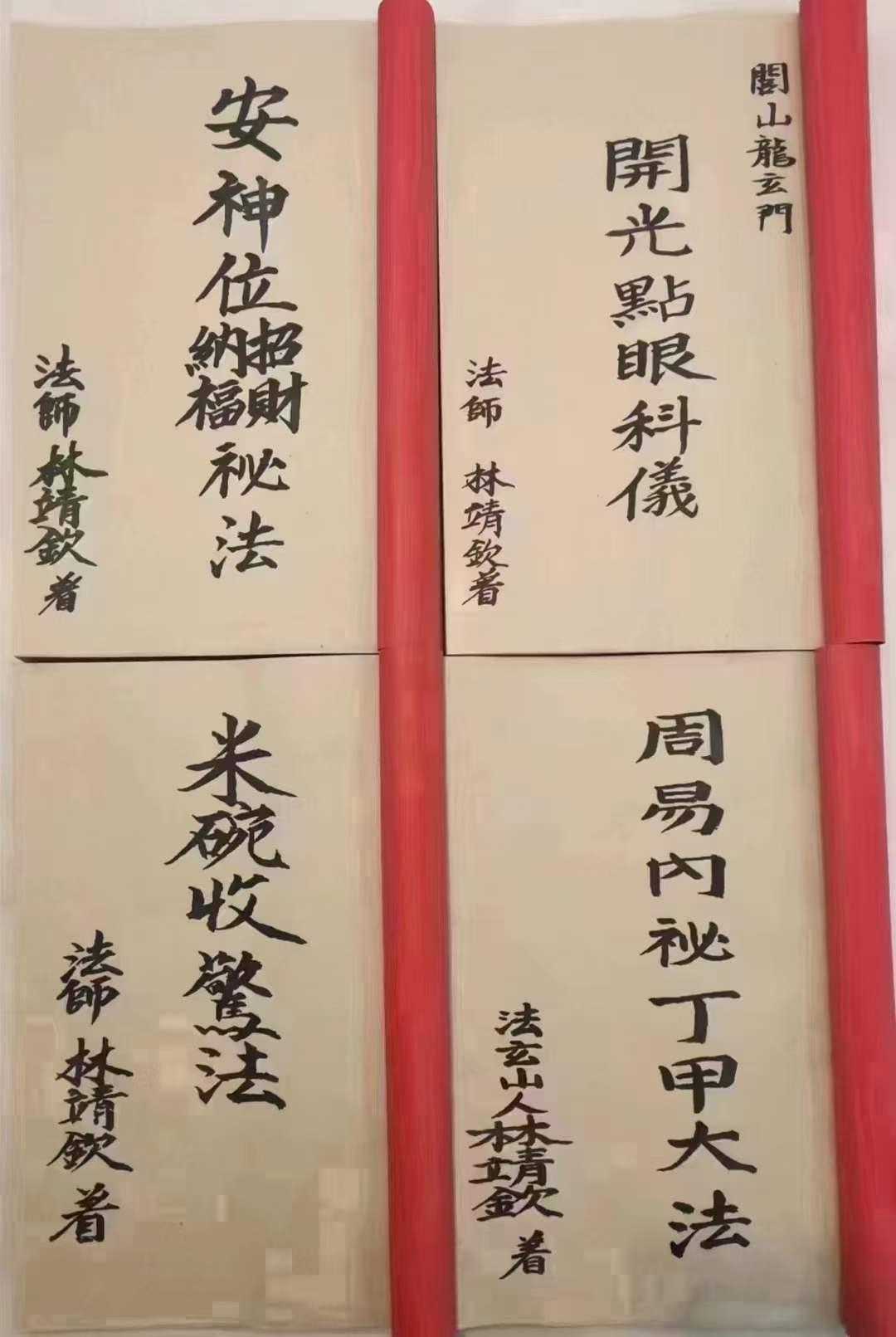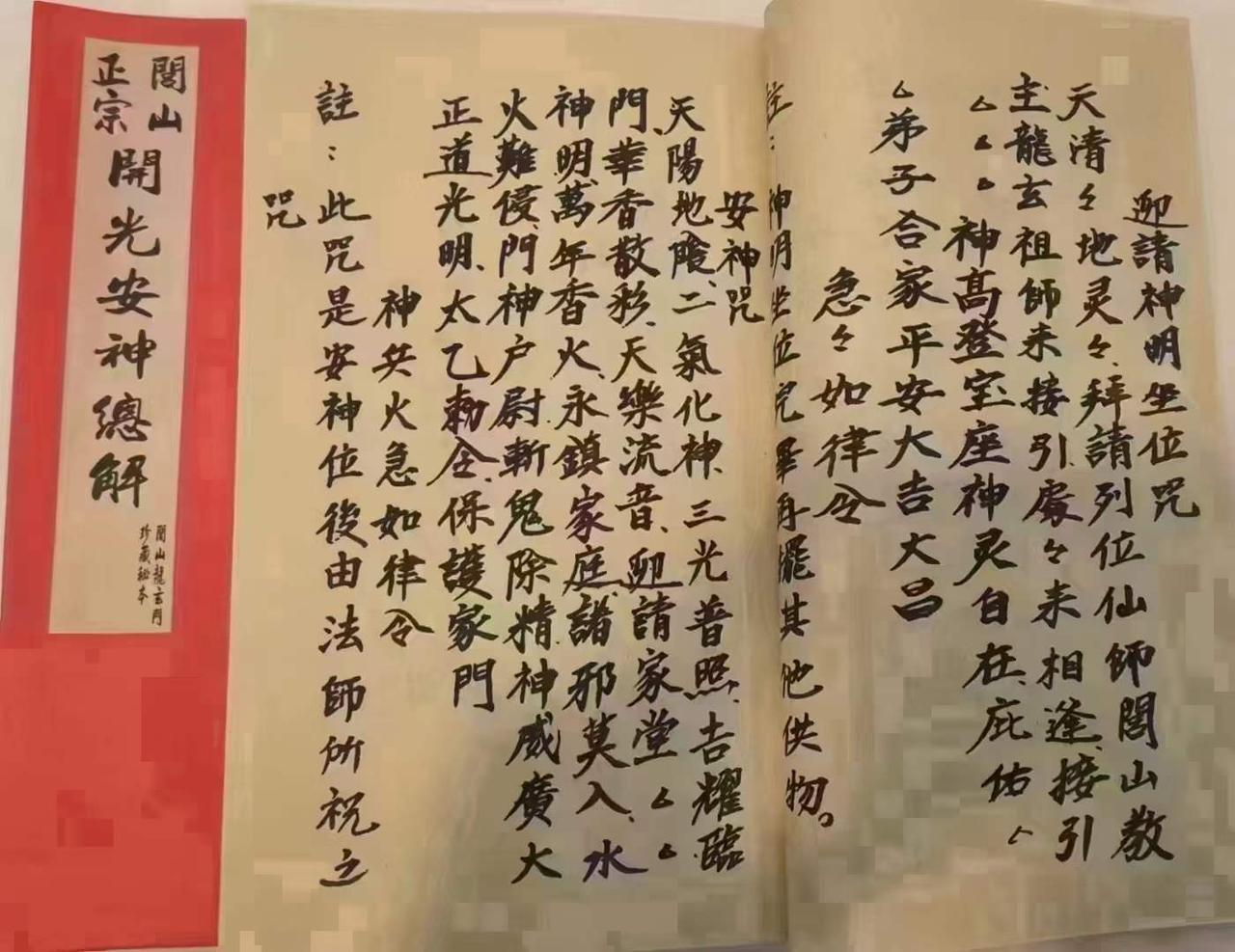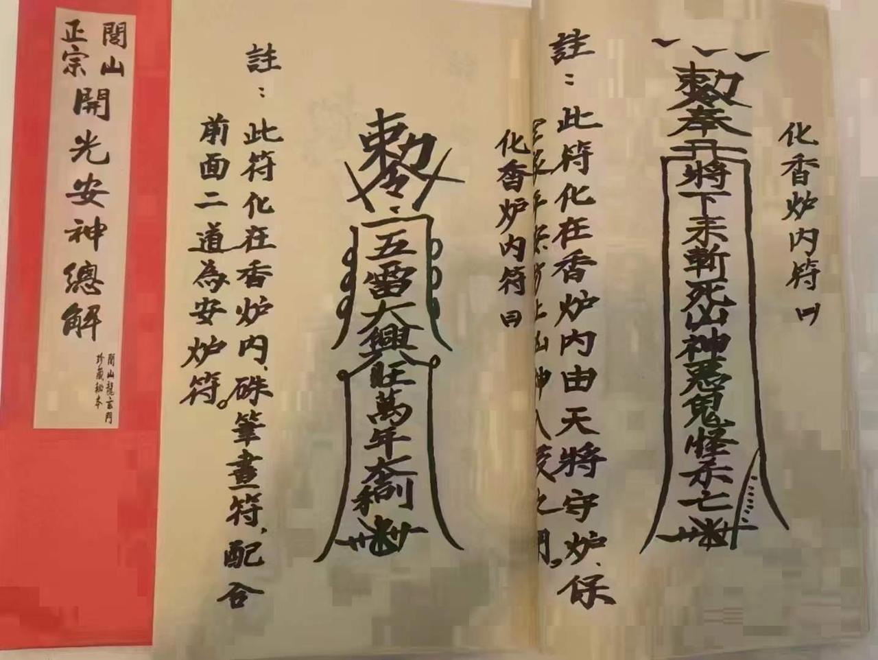 《闾山正宗开光安神总解》闾山龍玄门珍藏秘本4本一套,共5科:开光点眼科仪、安神位招财纳福秘法、落地府进钱玄科、米碗收惊法、周易内丁甲大法,目前来说应该是我这里闾山派最全,最详细的一套书,符咒都有注解这才是最珍贵的地方,闾山有红头法师和黑头法师之分。