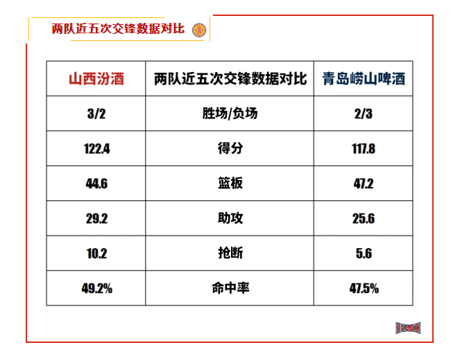 山西汾酒与青岛崂山啤酒历史上一共交手40次,山西汾酒25胜15负。上赛季两队交手2次,山西汾酒1胜1负。