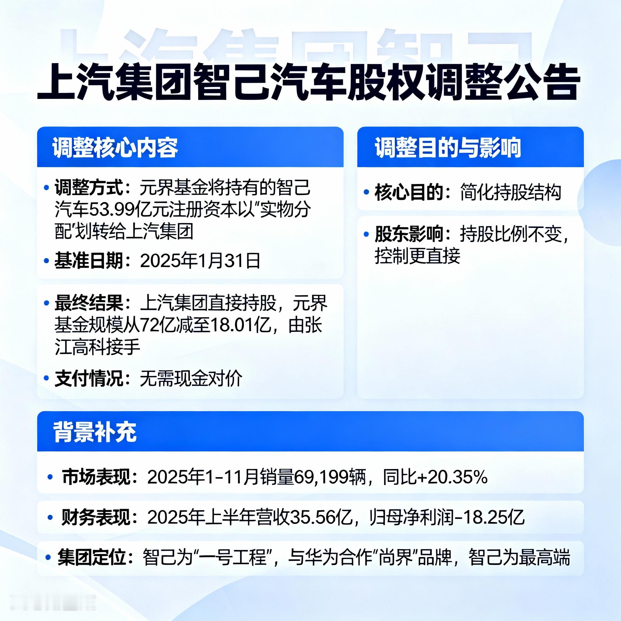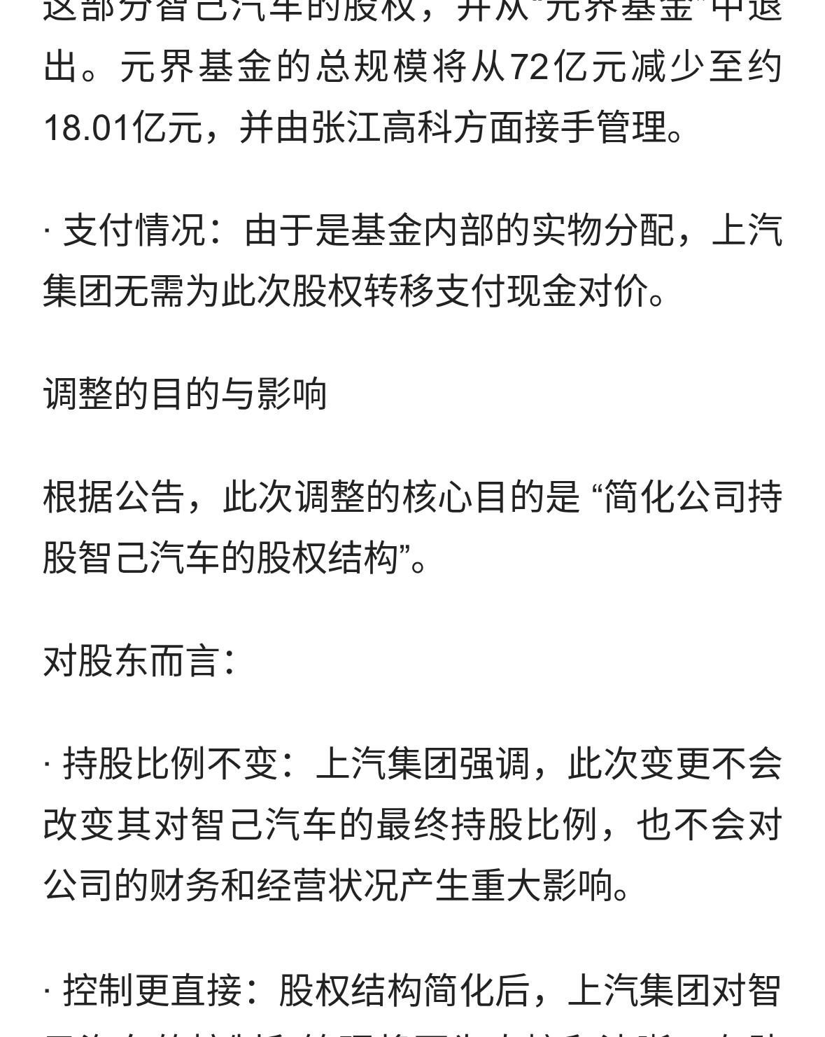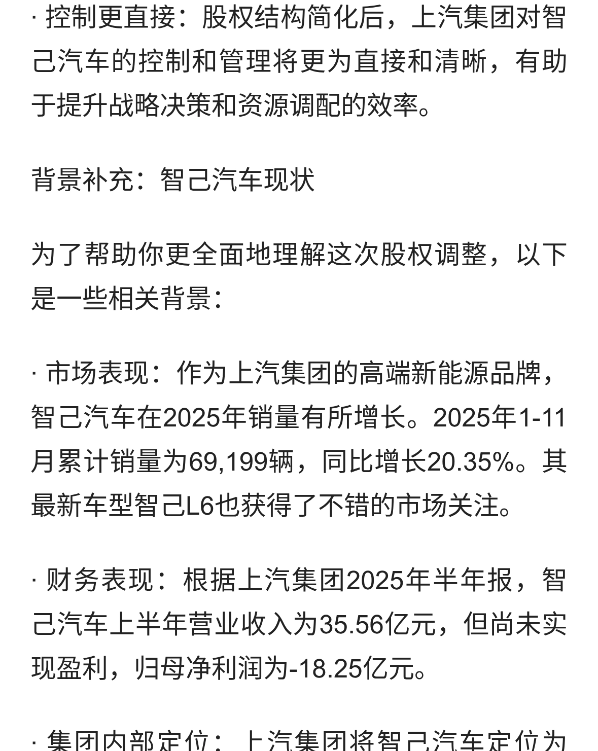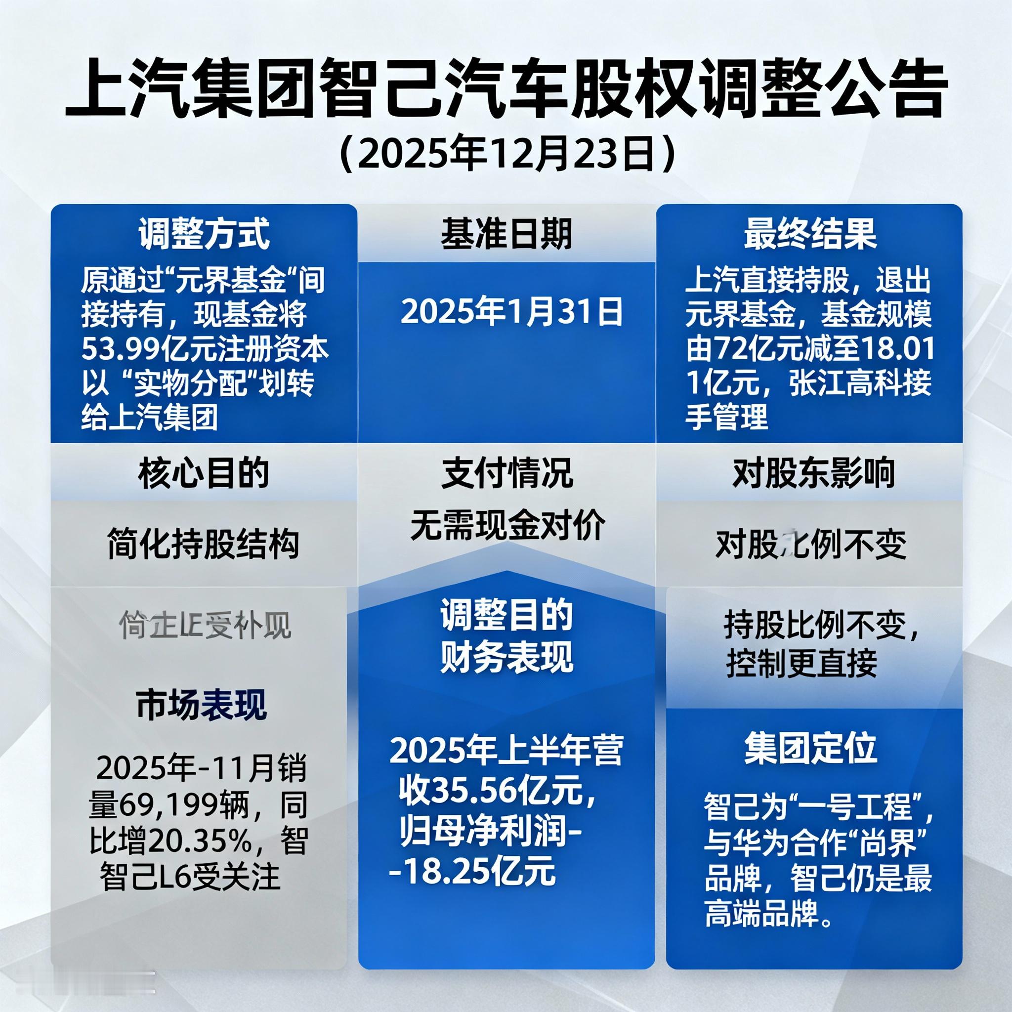 上汽集团在2025年12月23日发布其确实计划调整对智己汽车持股方式