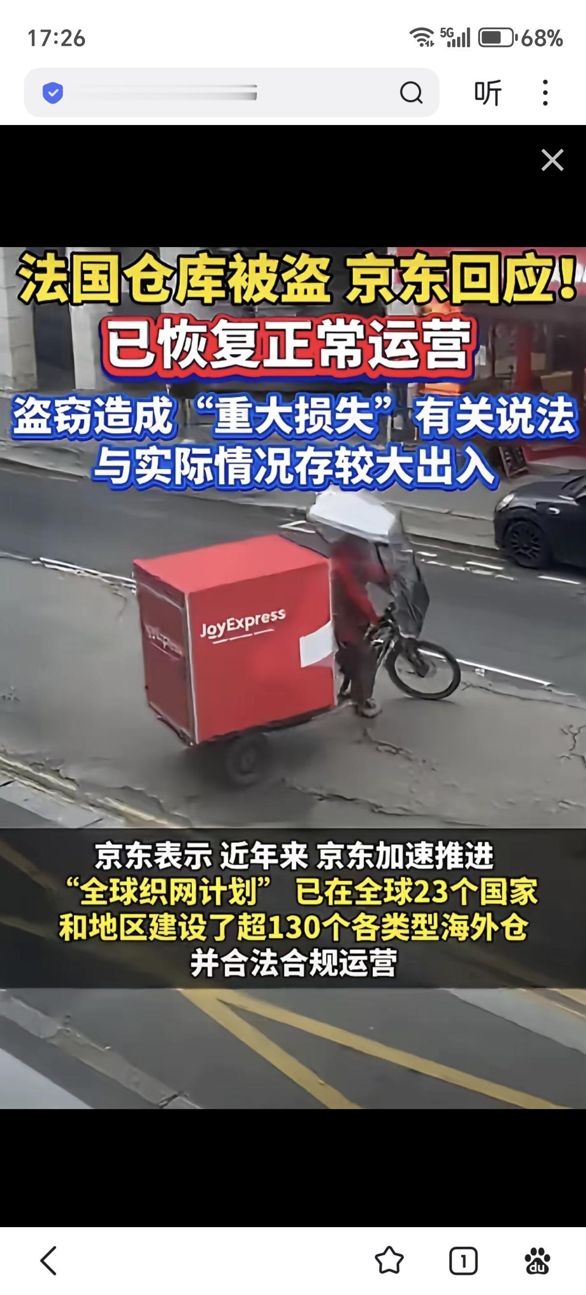京东巴黎仓被盗这事有新进展了! 仓库现在已经恢复运营了,5万台3C设备、3个多亿