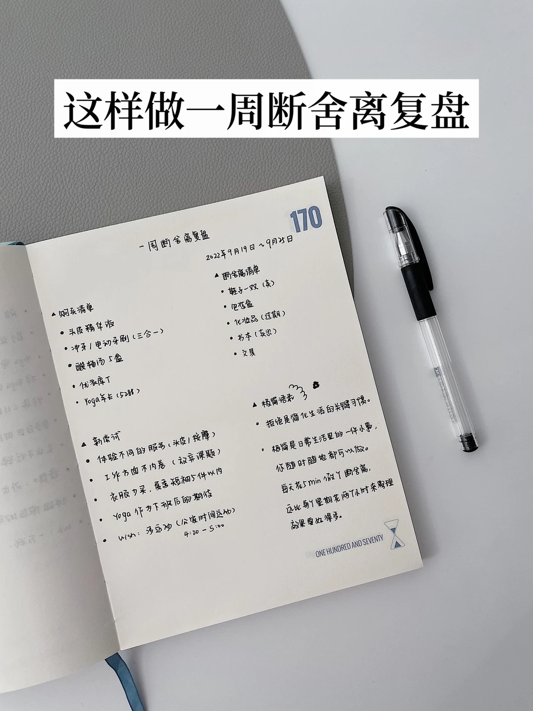 ▪️马上丢的物品:能马上决定丢弃的物品蕞开心了。比如写完的笔记本,还有一些放了两周都不使用的物品,尽快丢弃。