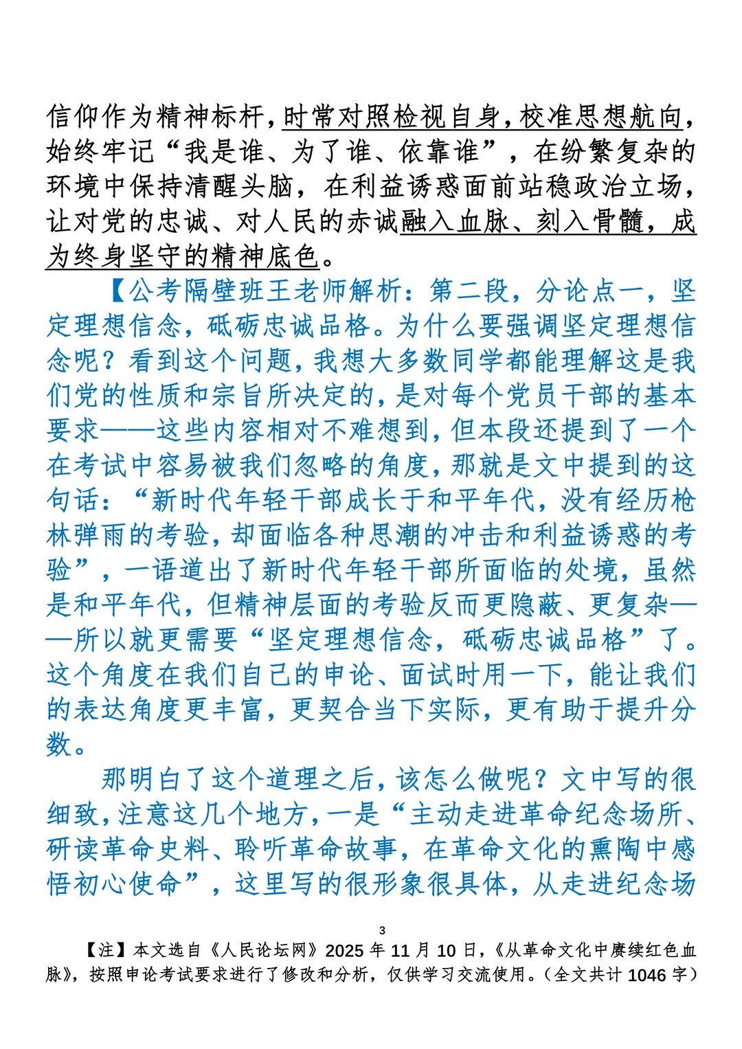 如何抄写:每日抄写文章发在“公考隔壁班王老师”账号,红色字是重点句和结构句,黑色字是正文,蓝色字是解析,大家抄写时不必抄蓝色字。建议先通读全文,做到心中有数再开始抄写,效果会更好。 关于文章:抄写文章来源于人民日报,但每篇文章我都根据申论考试要求进行了修改:一是重写或修改开头、结尾;二是统一段首句句式结构;三是调整段落字数,使文章结构更均衡;四是简化复杂长难句,使之更具可模仿性。每篇文章无论修改多少,都是基于申论考试要求,毫无对人民日报文章品评之意。(此处致敬人民日报)