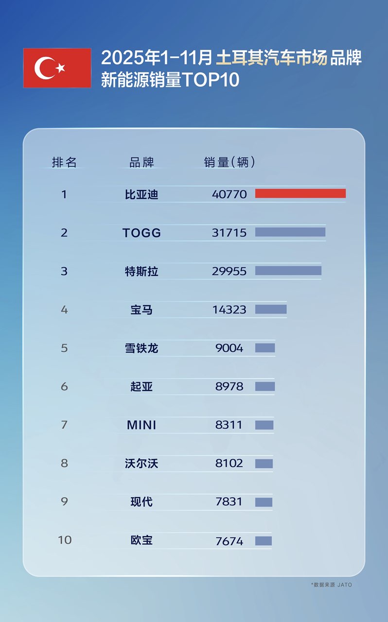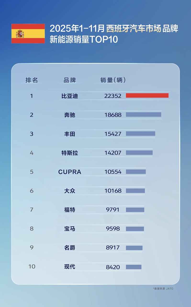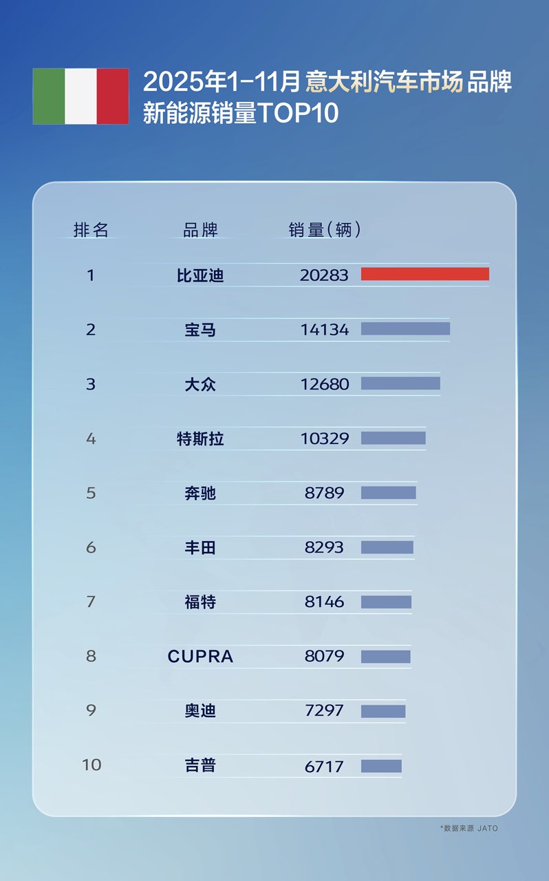 尤其值得关注的是,今年1-11月,比亚迪在英国、德国、意大利等全球11个核心汽车市场,销量全部超越特斯拉。从产品矩阵到本地化运营,从自建滚装船到完善服务体系,比亚迪的全球化打法越来越扎实。