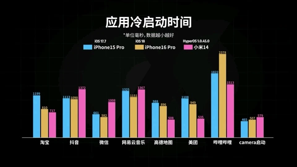 8款应用冷启动时间有5款比小米14慢