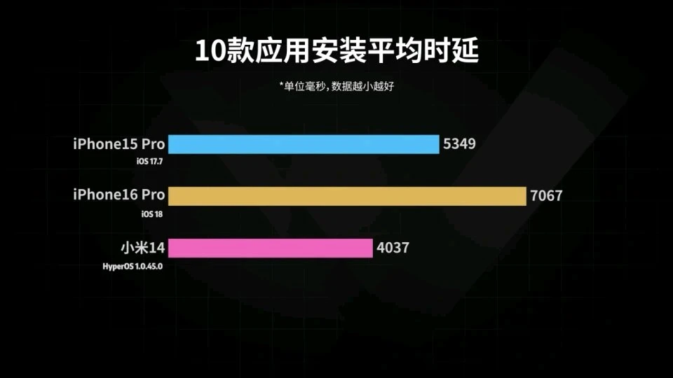 10款应用平均时延比小米14差