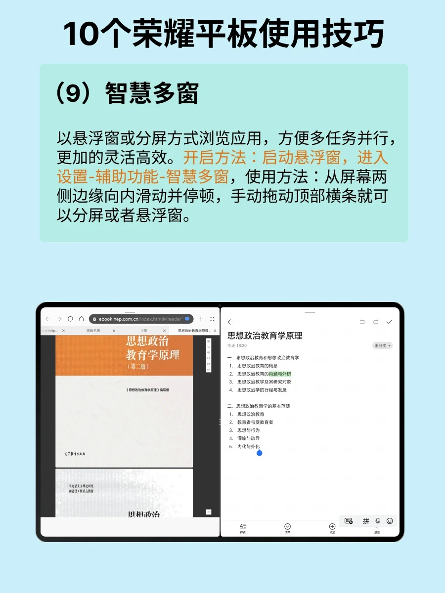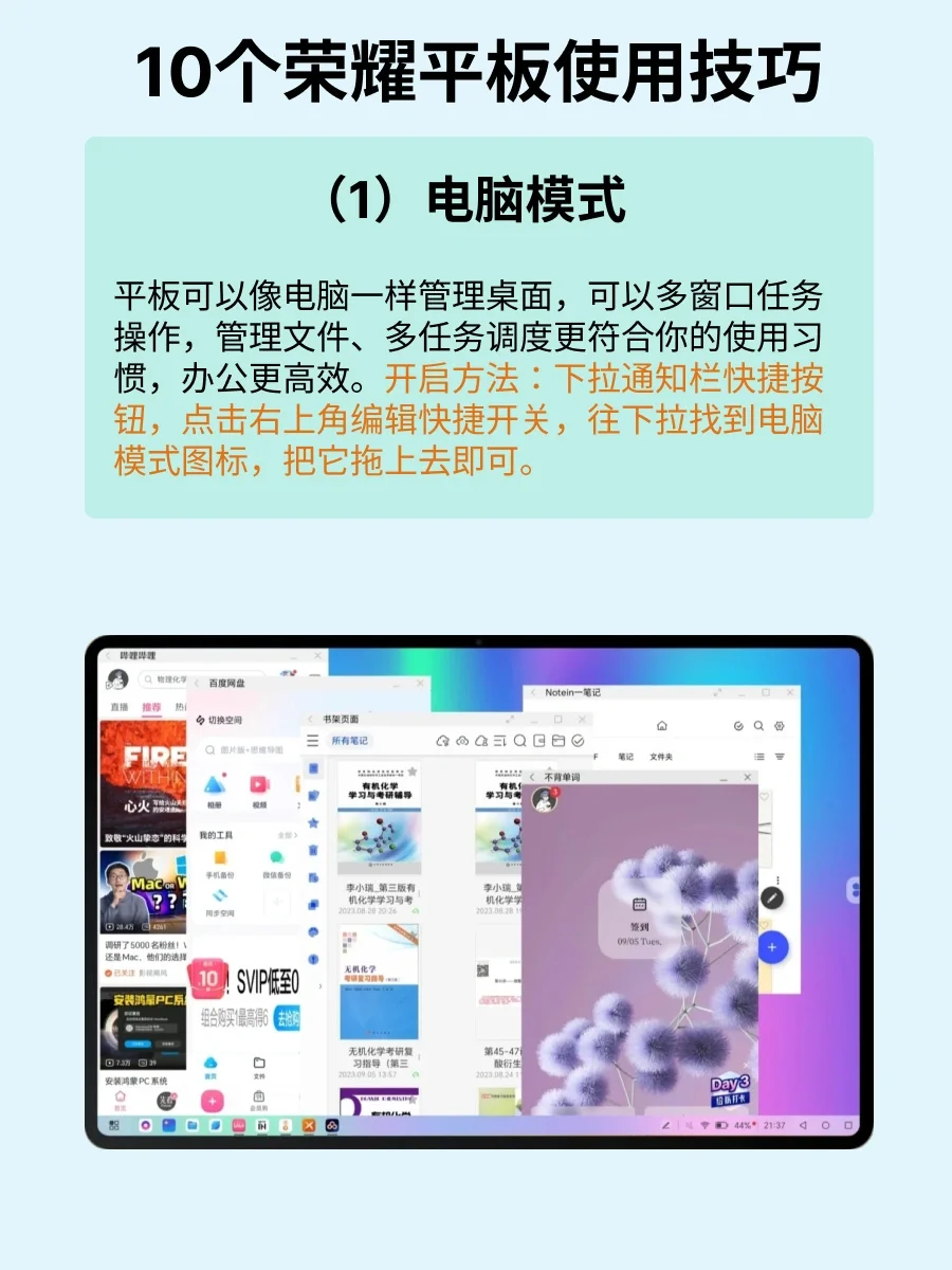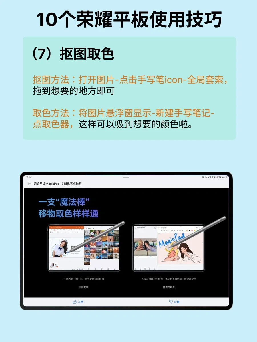 今天研究设备使用功能,我发现几个厂家做得好的还是荣耀,手机内置玩机教程,一按就能直达,这大大方便新手用户快速上手的体验感。这份荣耀MagicPad13的隐藏功能就写得挺好,电脑模式、荣耀文档快速入手。记得老早之前各个厂家也都有这类教程,很多随着功能增多都弃用了,增加了用户学习成本,着实可惜,希望再捡起来。但也有人说教程根本不需要,要的人再自己去搜,你认为需要还是不需要?
