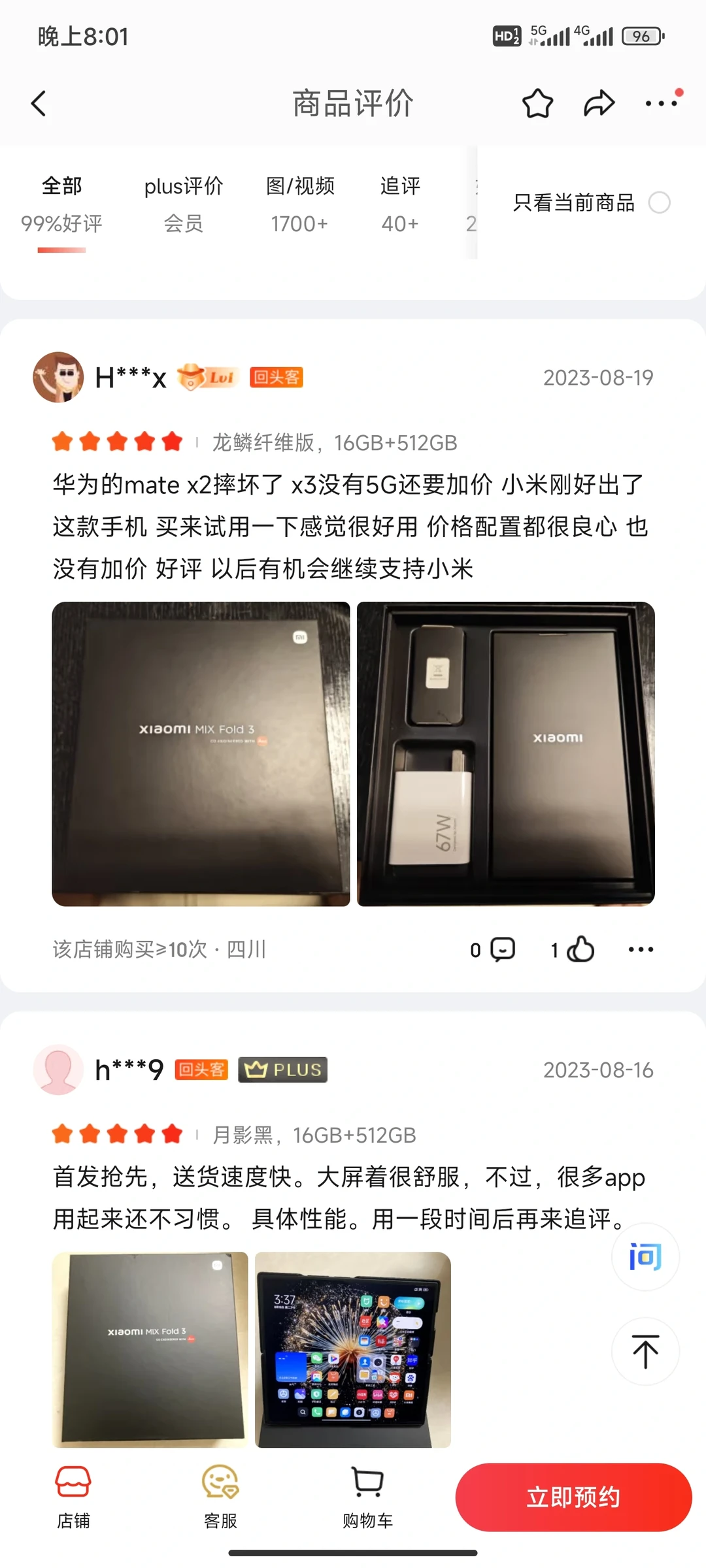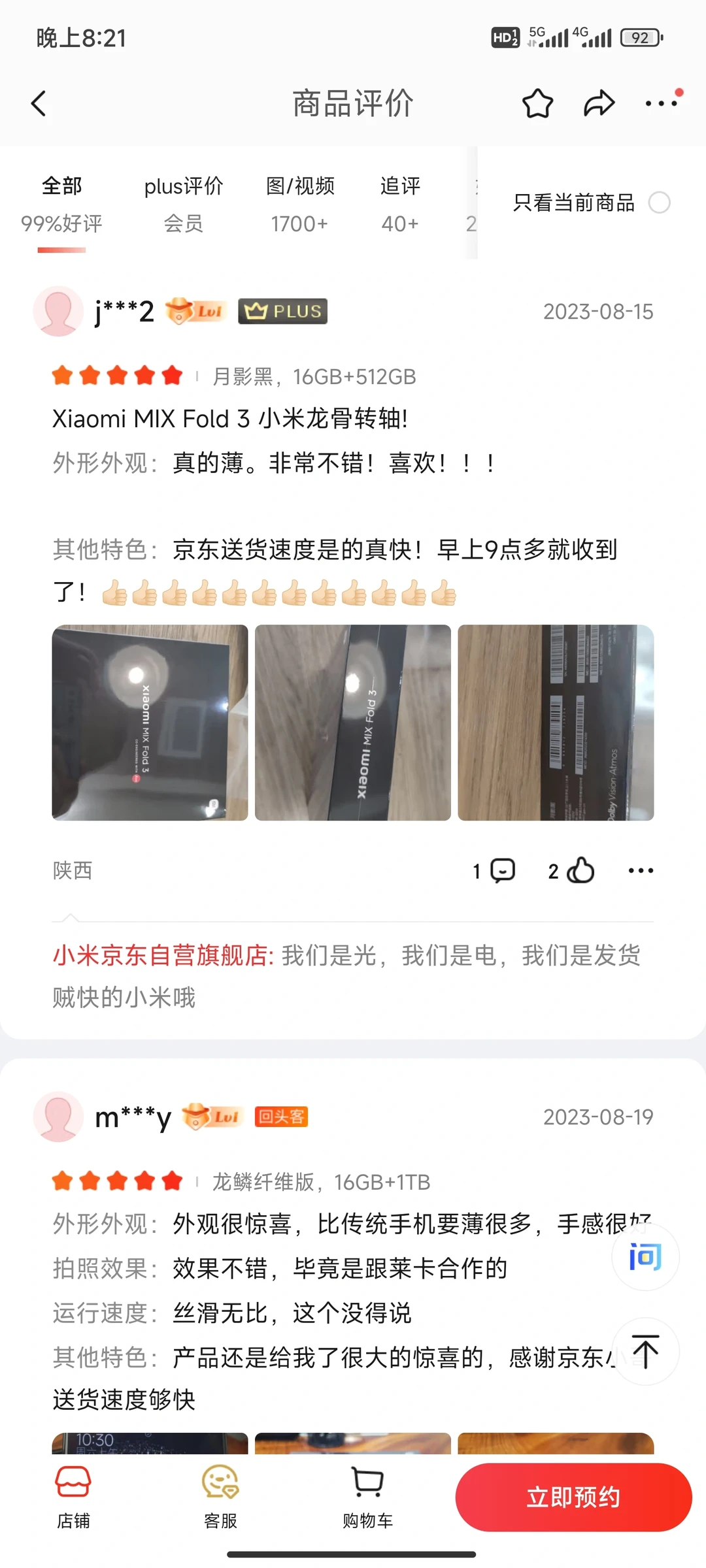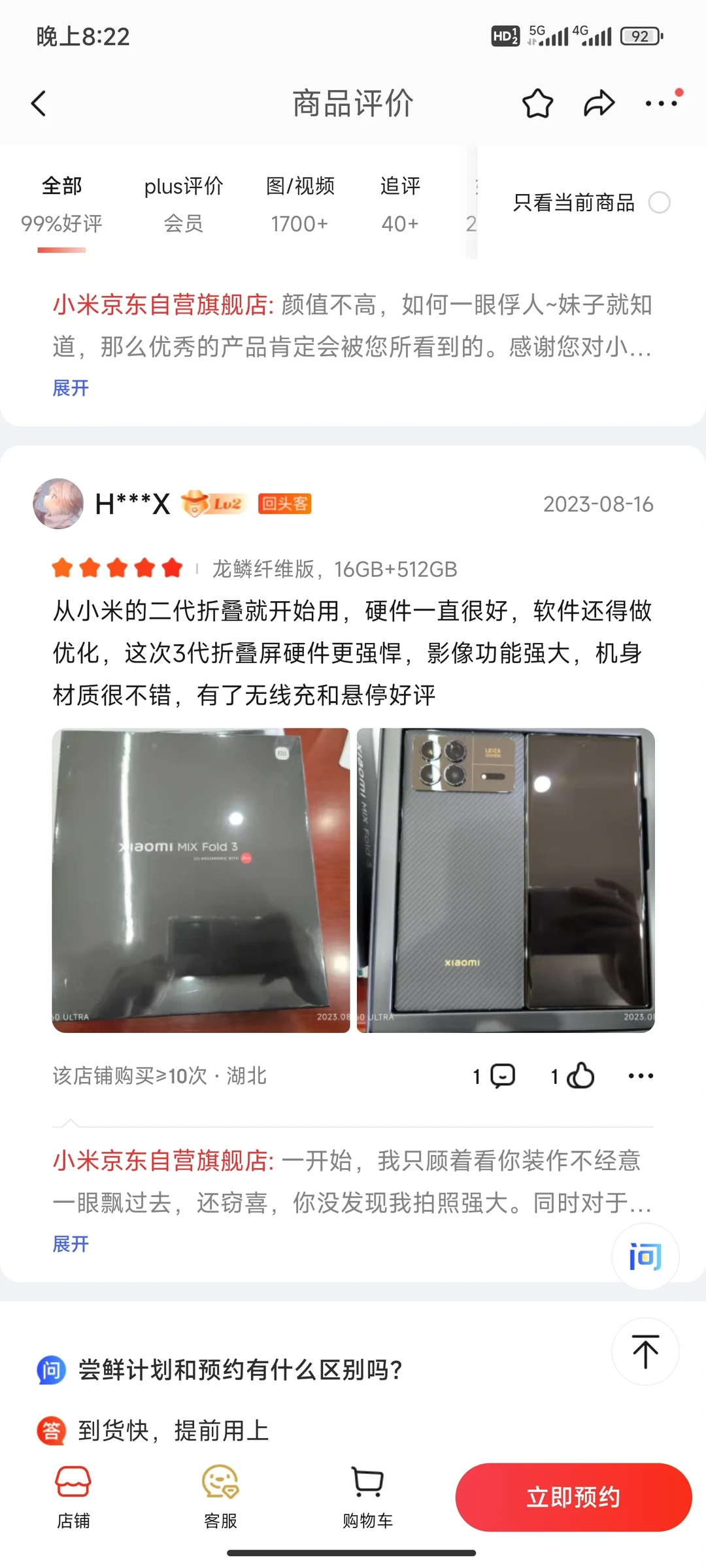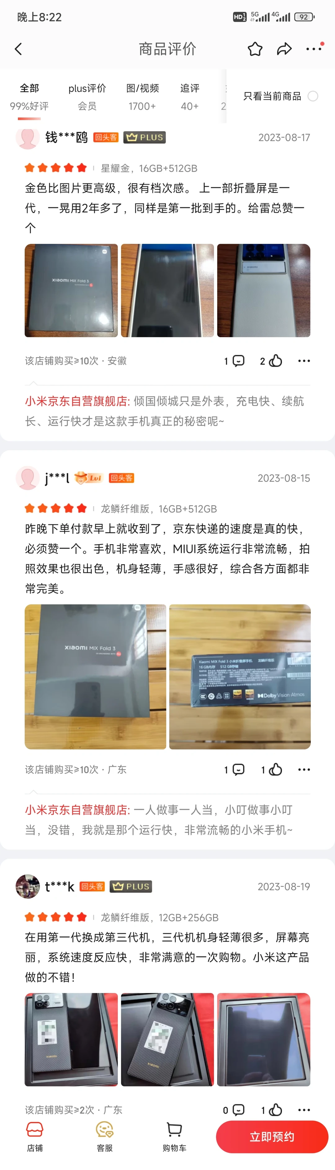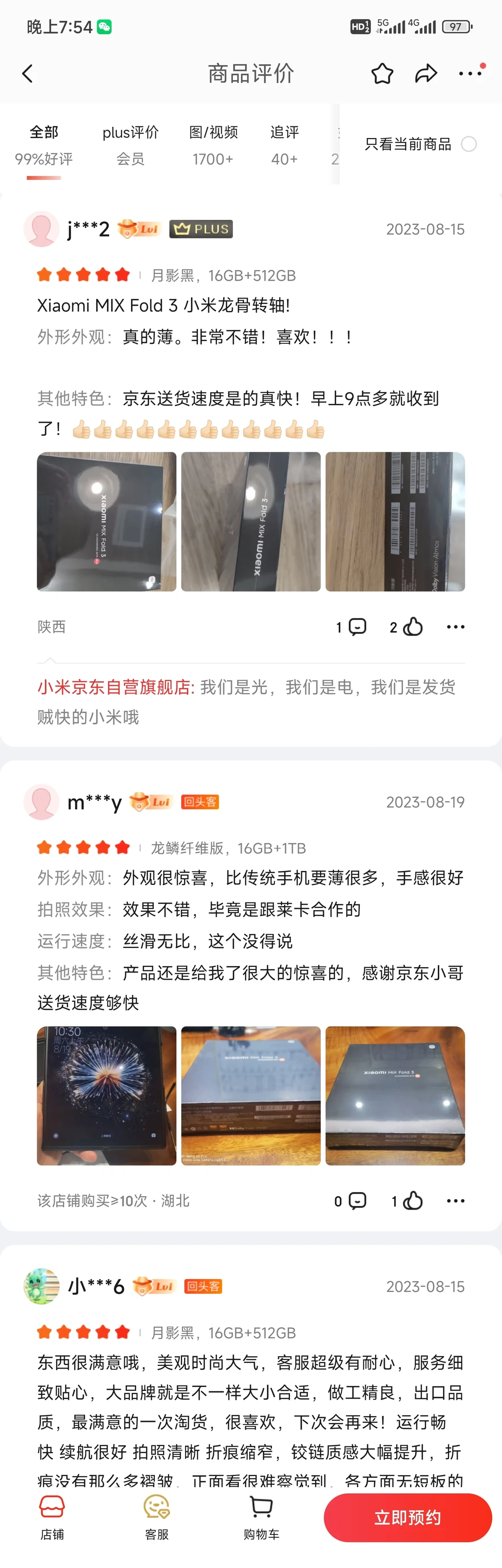 小米MIX Fold 3开售第一波评论数就5000+了,目前无货状态,看了评价,好评率99%,我挺好奇的去看了一下,情况基本是这样: