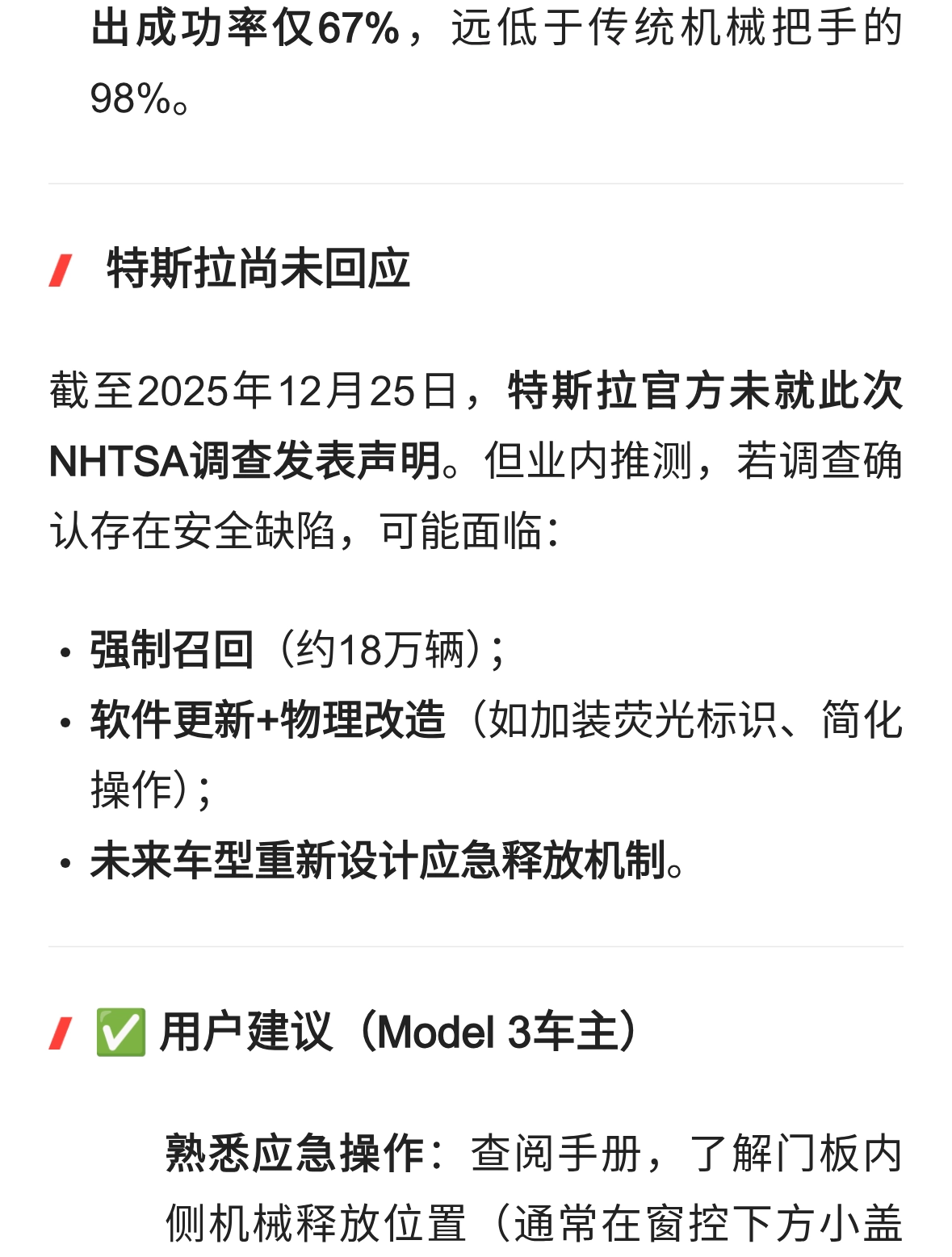 美国对近18万辆特斯拉Model 3开启调查:应急机械门把手不显眼