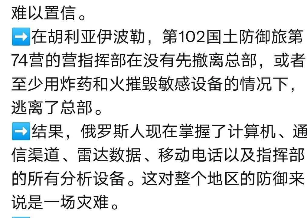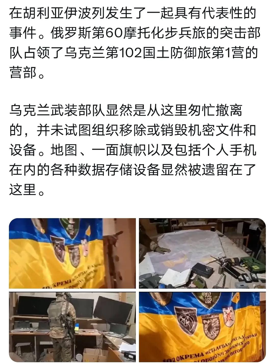 俄罗斯icon在胡里艾波尔,完好无损地攻占一乌军营指挥中心。能看出来乌指挥官仓惶逃走,作战机密文件,工具一样不少地留给了俄军icon。 一般只有士兵比营长提前撤退,才会发生这种情况;也可能是友军不打招呼就撒,自己营战士随即不请示长官也逃了。因为一切完好无损,更可能指挥中心被全员俘虏,没想到逃跑,已被抓。 现在可以确定这是102旅某营指挥中心。至于是1营还是74营无定论。乌官方尚未回应。我相信,这是102旅战士,活生生地将长官变成了自己的殿后。 如有进展,周六晚七点半直播间汇报。